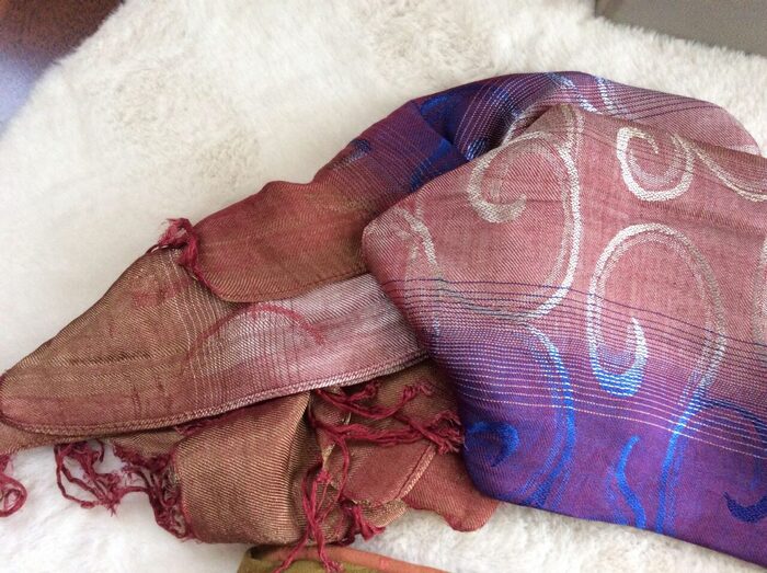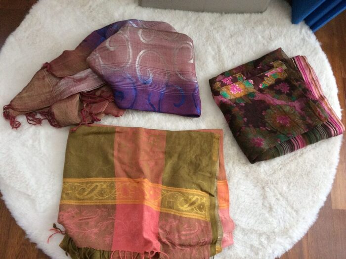 Pari al nuovo ma senza etichetta, misto seta, cotone acrilico, lunghe e molto ben rifinite, posso dividere.