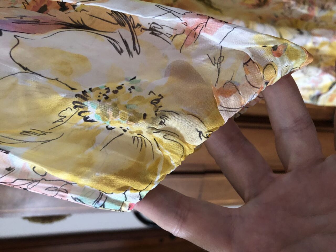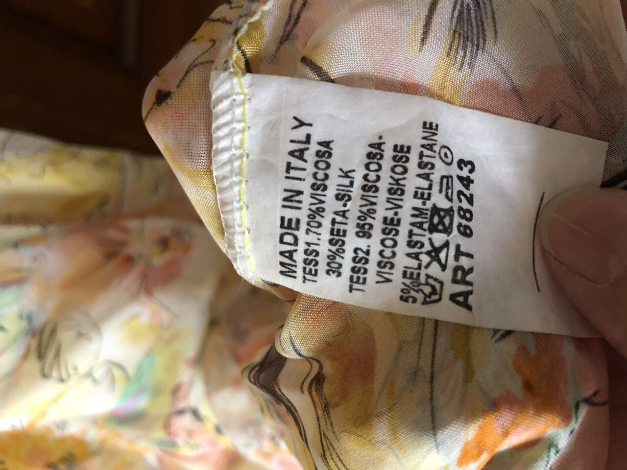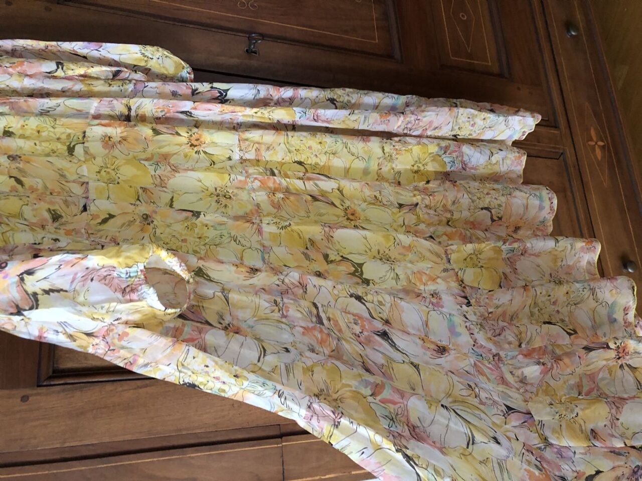 Abito ampio e lungo Viscosa e setaSenza taglia perché penso venduto come taglia unica, metto le misureL’unica etichetta che c’è è quella fotografata Leggero. Con sottoveste che è staccata. Fotografata da sola nell’ultima fotoLunghezza totale 130 cm Larghezza presa sotto le maniche 55x2 cm , poi si allarga con delle balzeUsato poco o niente .