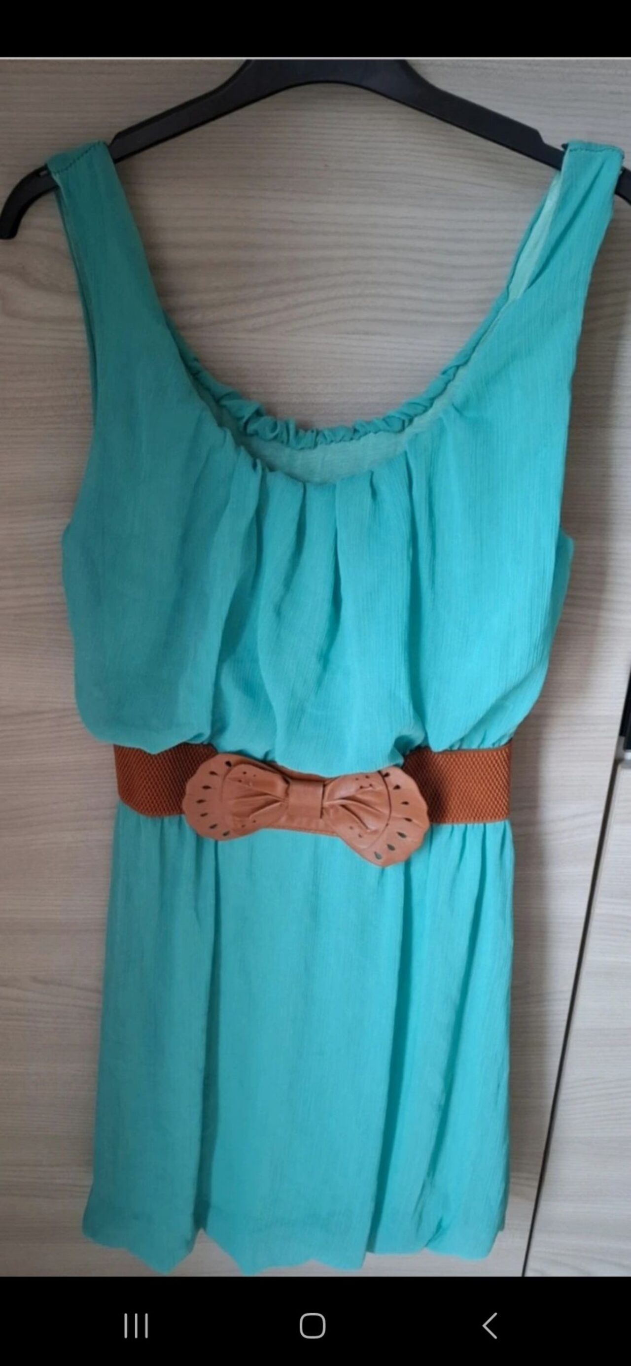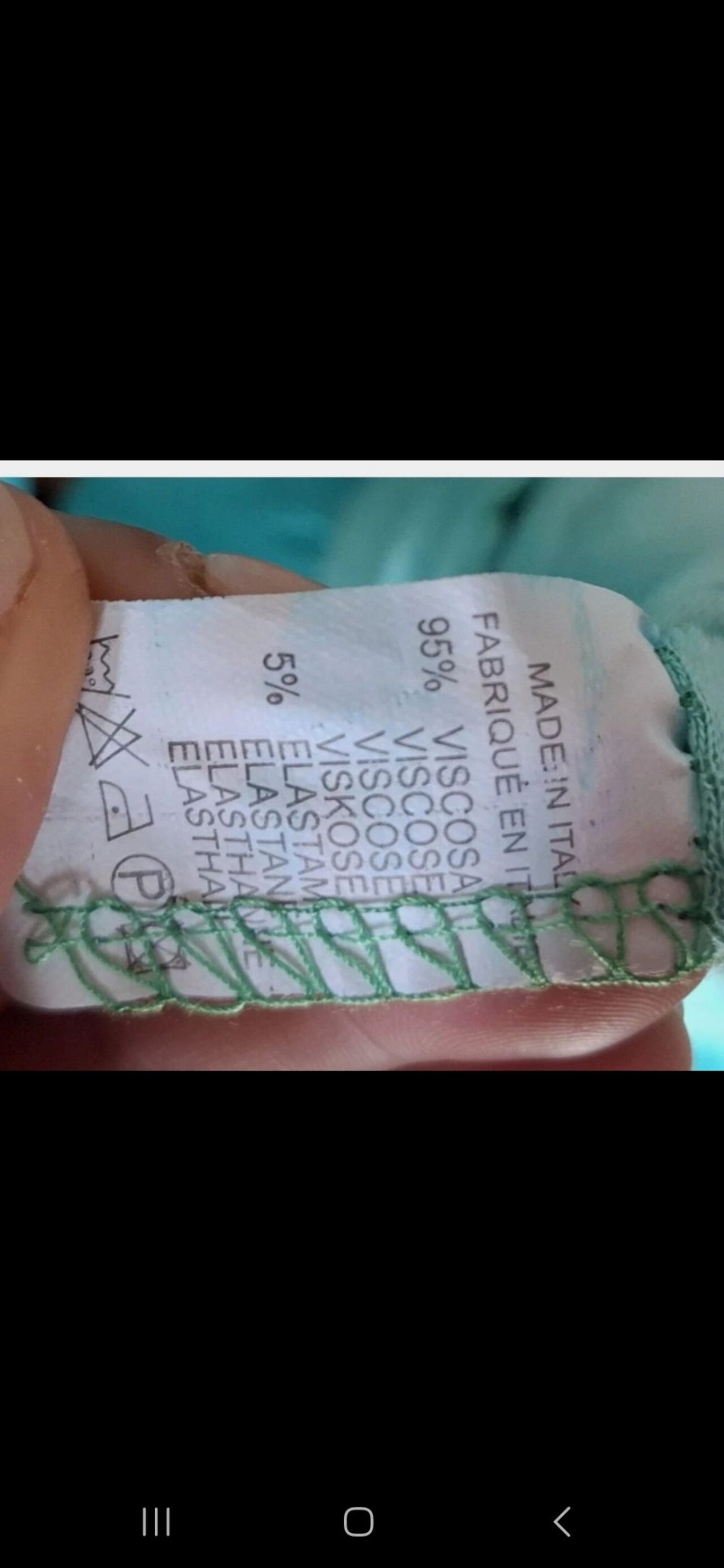 Abito preso qui ma non ricordo i crediti. Rimetto in scambio perché per me è piccolo. Direi TG. M. Viscosa e elastan. Cintura applicata, non staccabile. .