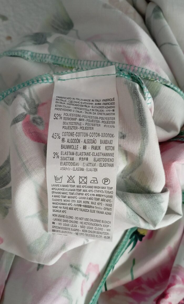 🧵Tessuto elasticizzato: 52%poliestere, 45% cotone e 3% elastam.