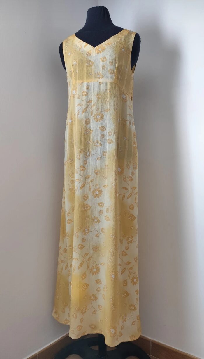 Abito lungo giallo con fiori sartoriale | Cose(in)utili.it