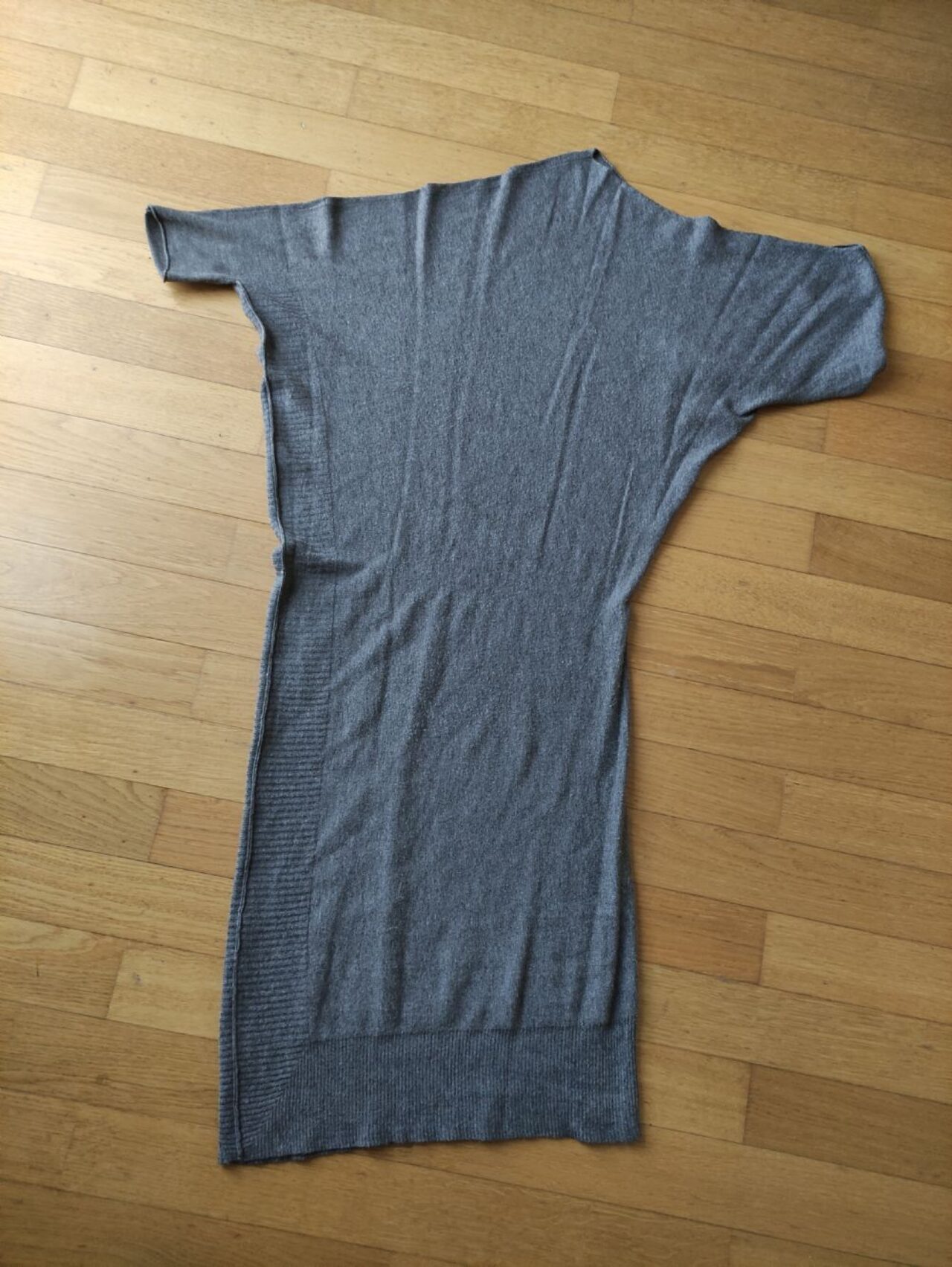 Abito Zuiki, taglia l, grigio, autunno inverno, asimmetrico nella parte superiore (scollo a barca laterale e maniche diverse), sopra al ginocchio .