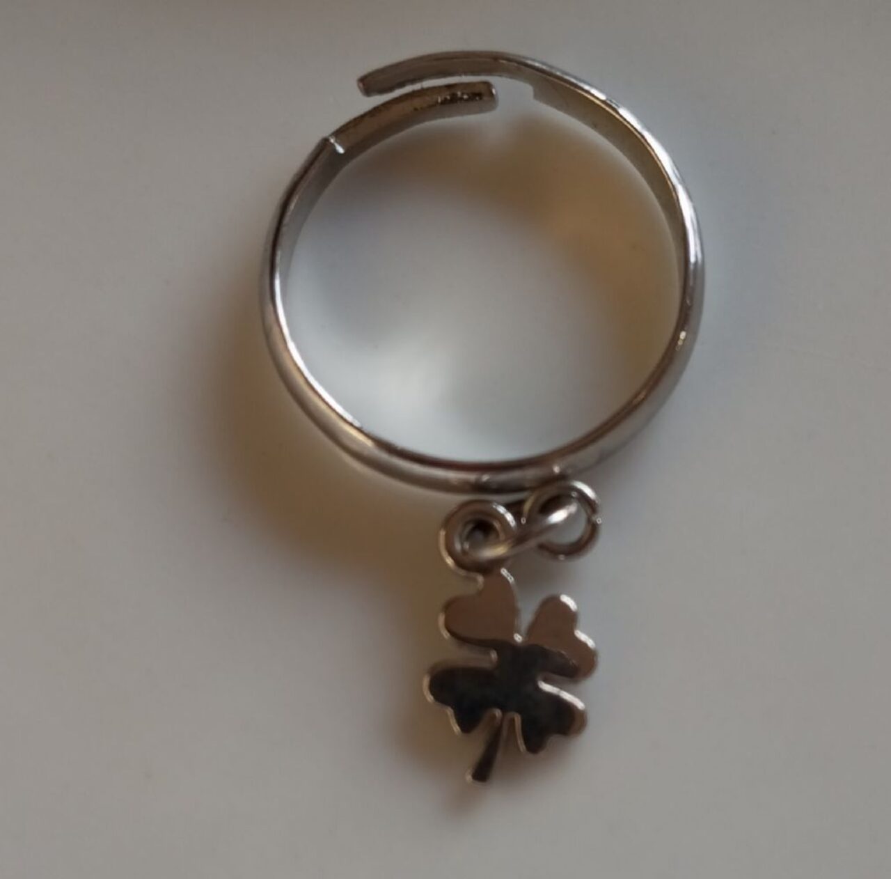 anello quadrifoglio,in metallo argentato,regolabile