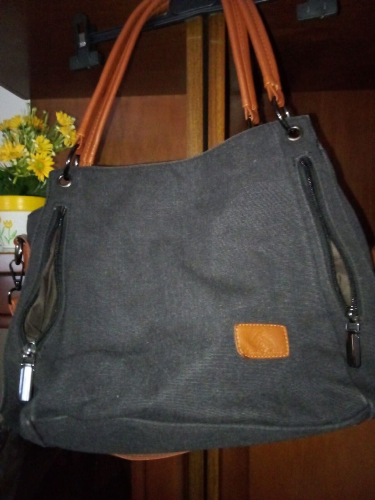 Borsa a spalla in tessuto, con due manici e tracolla regolabile e staccabile. Interno con una tasca grande con cerniera e due vani. Due taschine esterne davanti e una dietro. Spedizione diretta con rimborso su Postepay. .