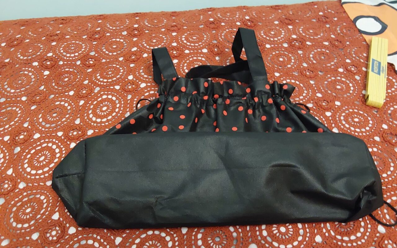 Borsa grande tessuto non tessuto, con cordino e manici. Fondo rigido. misure 35x55x14 .