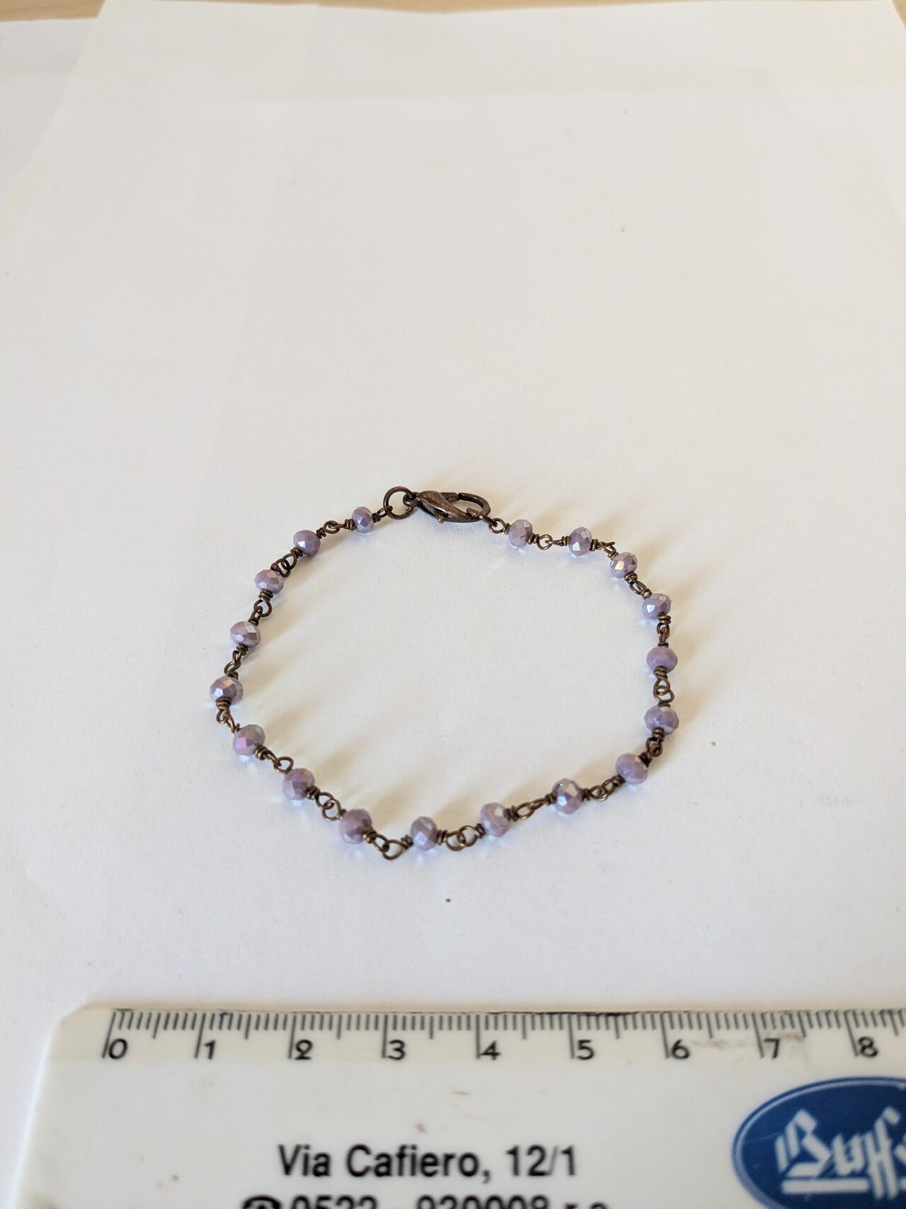 Bracciale composto da una catenina sottile in bronzo con pietre di colore lilla. Nessun difetto . .