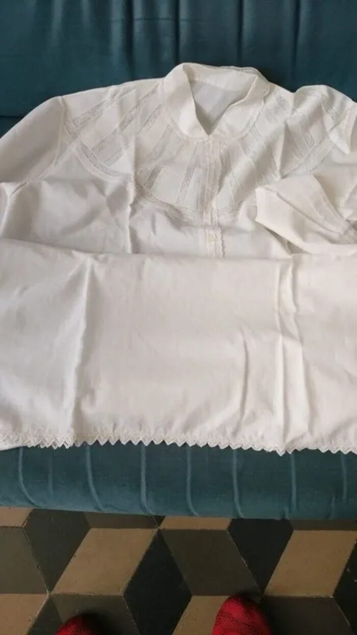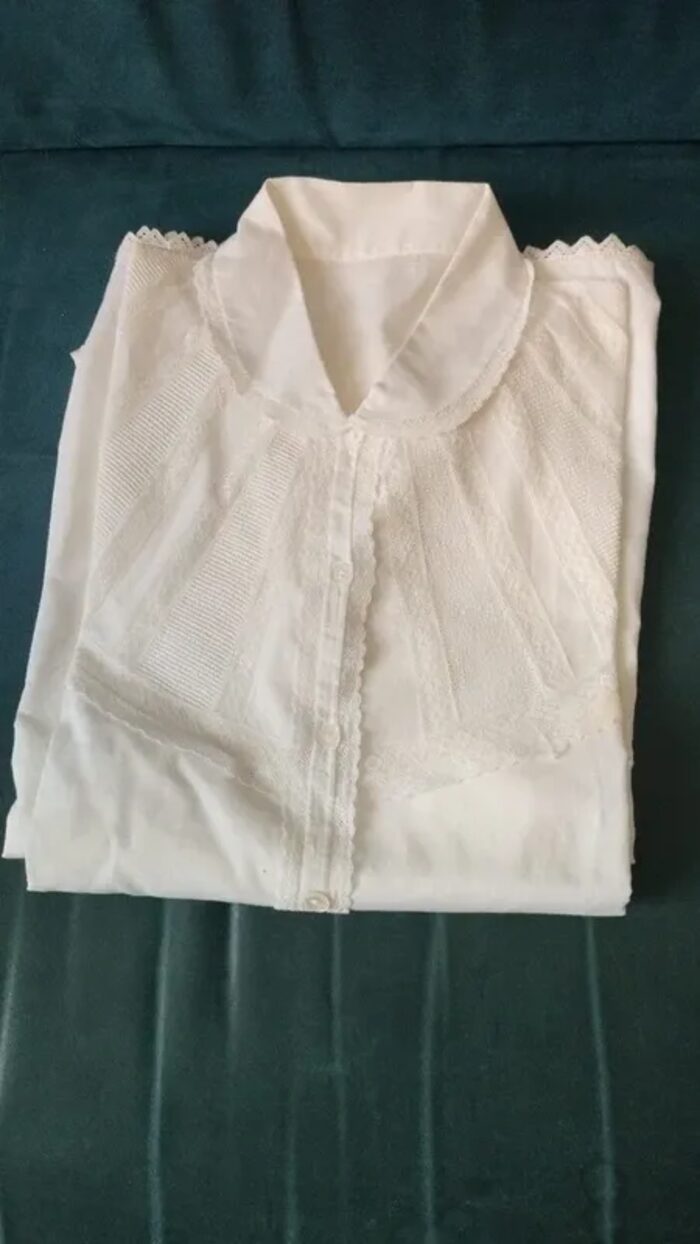 bellissima camicia da notte in cotone leggero ricamata con pizzetto anche in fondo vintage .