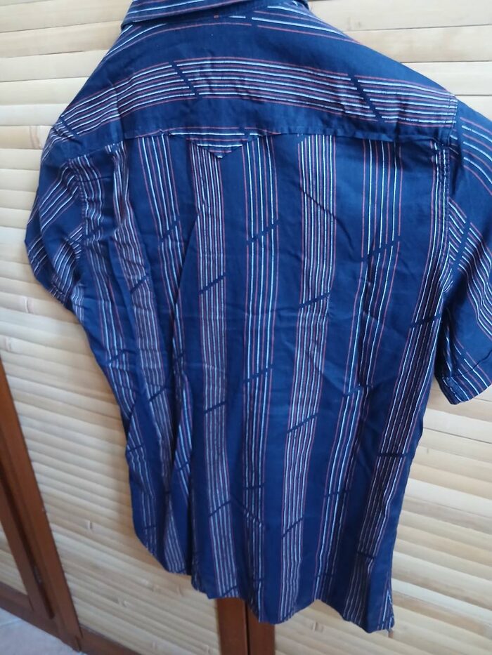 Marca Point. St., collo 39 ( taglia S), in colore blu scuro con leggere righe bianche e rosse in verticale. Etichetta della composizione non presente, ma quasi sicuramente si tratta di cotone. .
