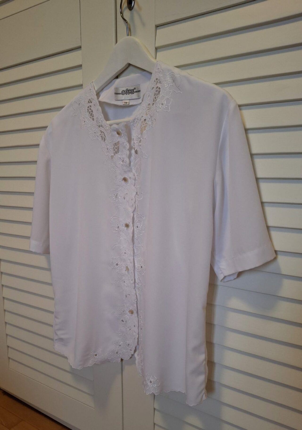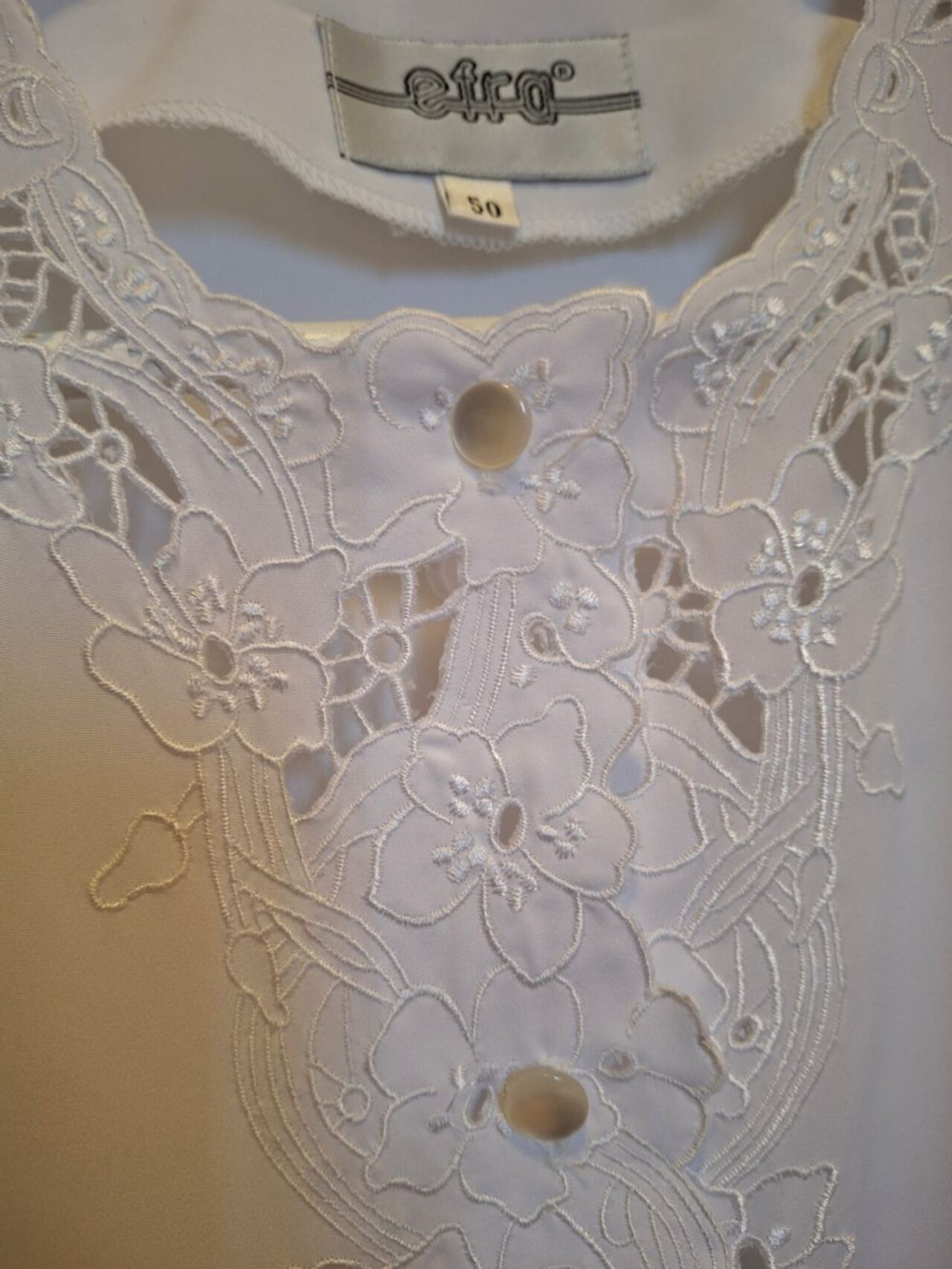 Bella camicia con ricami e trafori sul davanti.