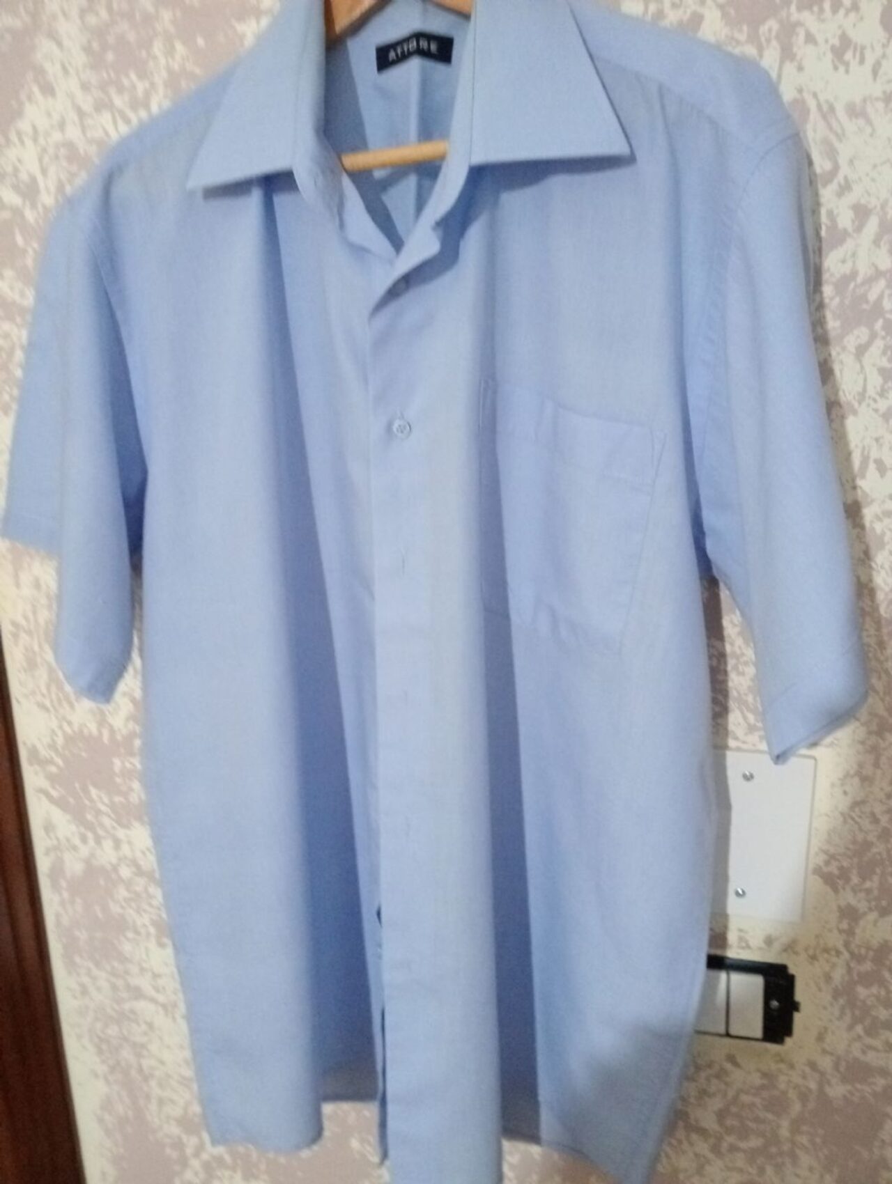 Camicia estiva a maniche corte,materiale non descritto ma penso cotone.Marca Attore misure spalle cm.39 per 68 di lunghezza .