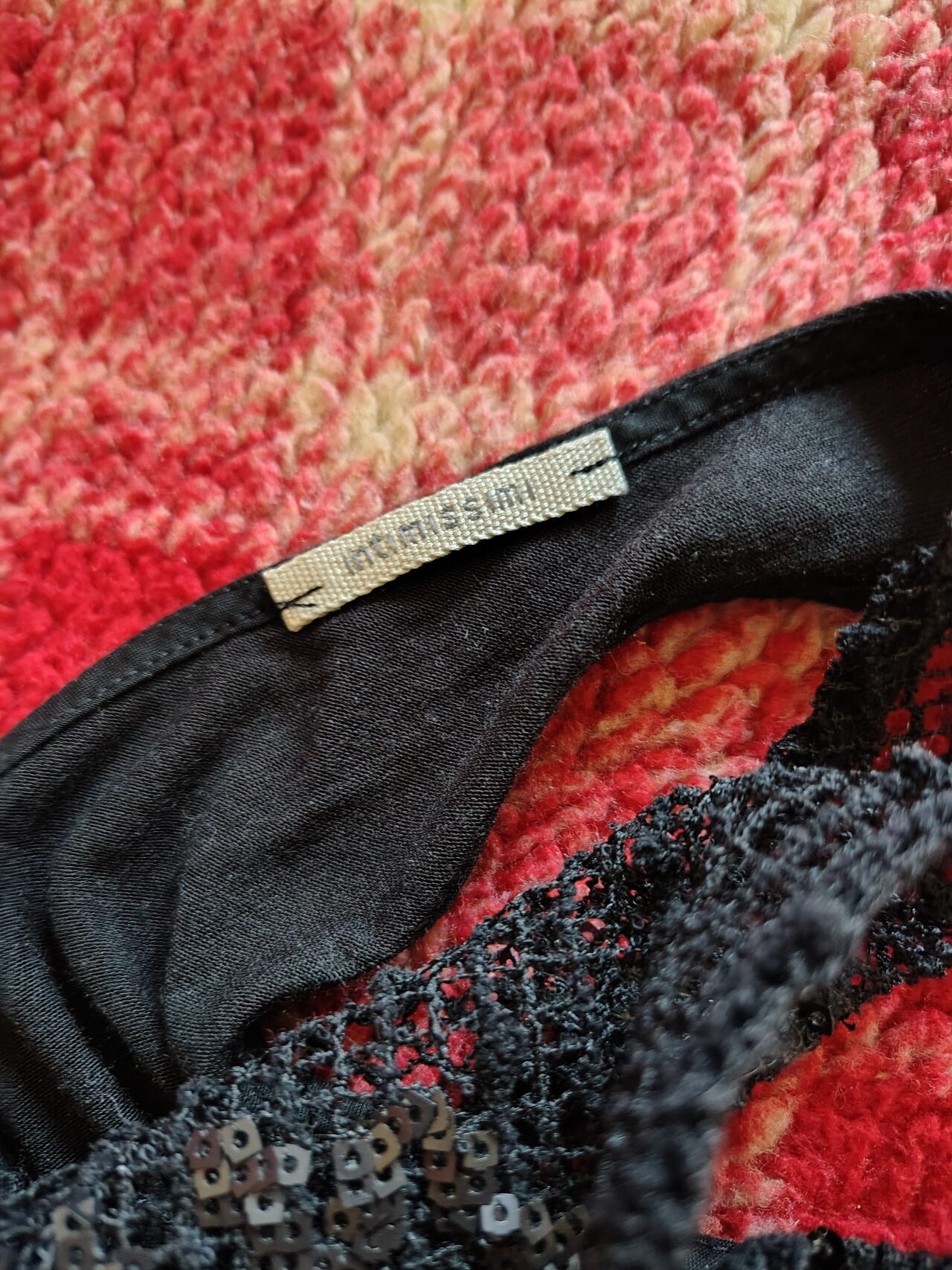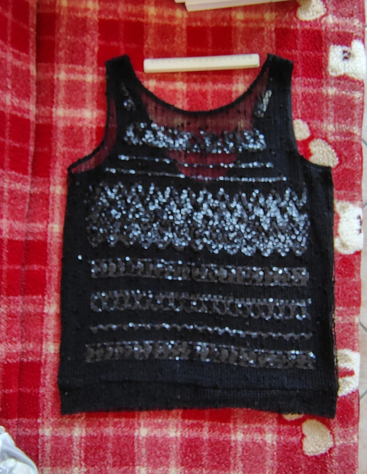 Canotta brillantinata traparente sul davanti. Composizione davanti 100% poliestere, dietro 98% modal 2% elastane. .