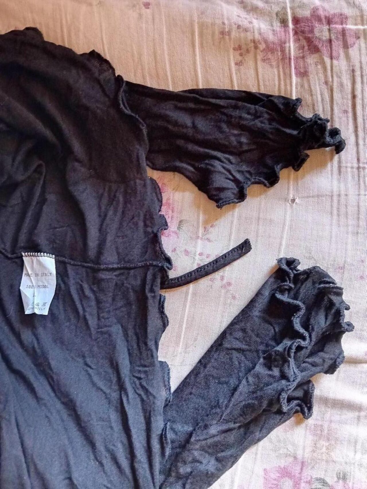 Preso qui, bello ma non lo userei, perché 1) non è una M di cotone come veniva detto ma, come da etichette, una L di puro modal (è un bel tessuto, morbido e sottile, ma non fa per me); 2) dovrei prima chiedere a qualcuno di ricucirmi i 2 cm di scucitura non segnalati, che mostro in 3a foto (per il resto è in ottimo stato, vale la pena farlo). .