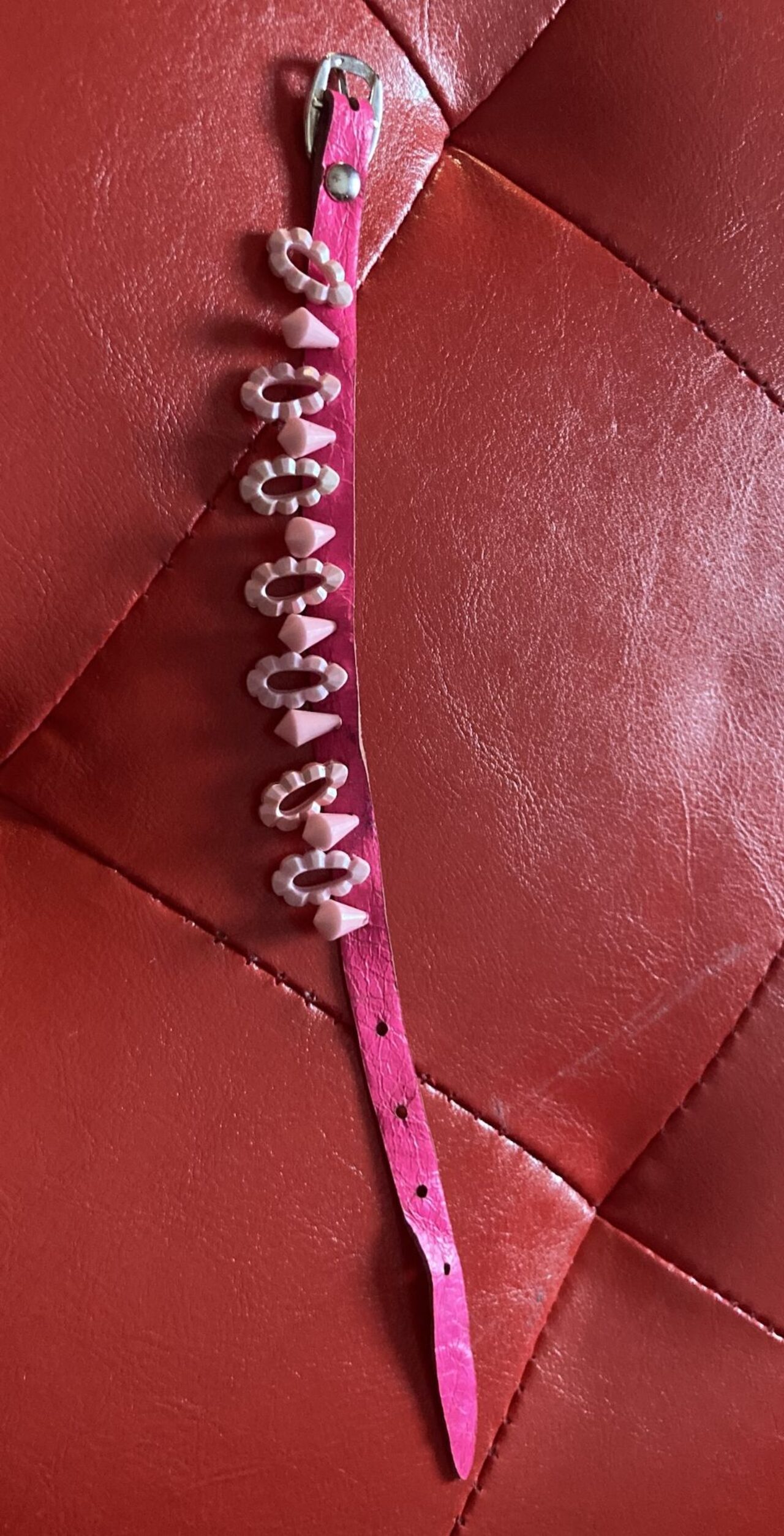 cavigliera rosa fatta a mano, in pelle .