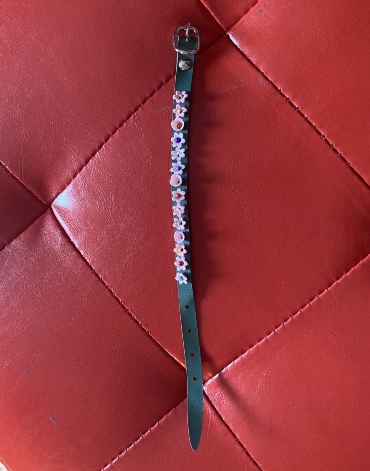 cavigliera verde fatta a mano, in pelle .