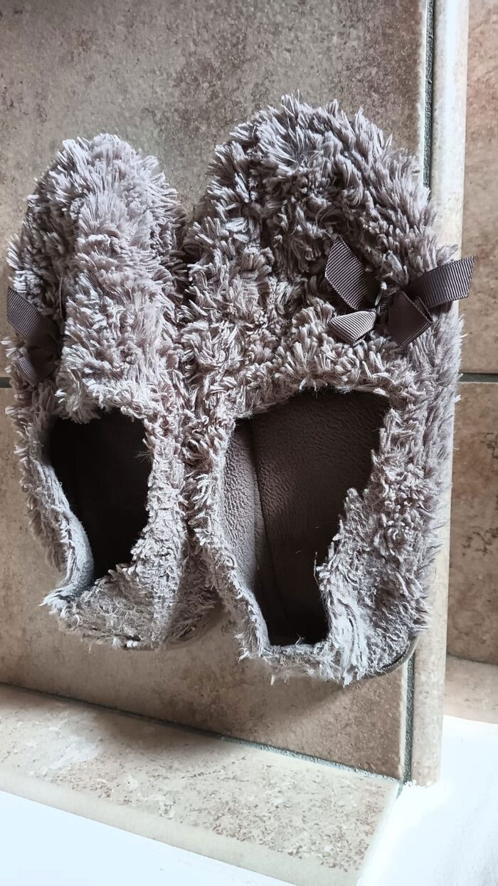 ciabattine pelose suole in plastica e fannorumore ,le ho fotografate prima di lavarle,ora sono uscite dalal alvatrice un po più pelosette,n 39 .