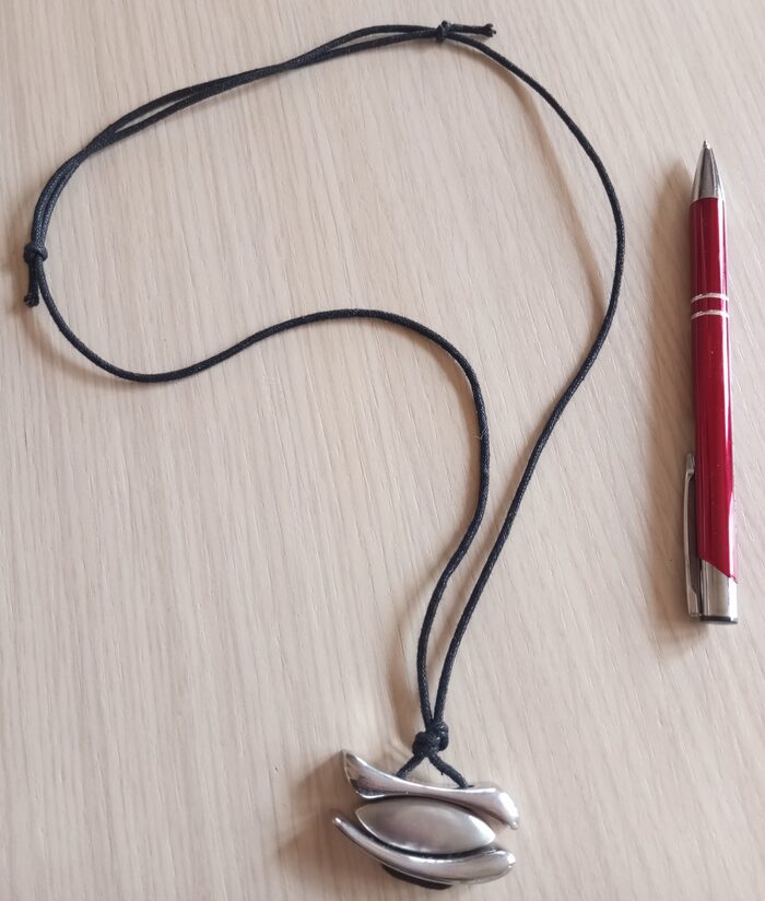 Collana con cordone cerato regolabile,il ciondolo è in acciaio.Penna per le proporzioni .