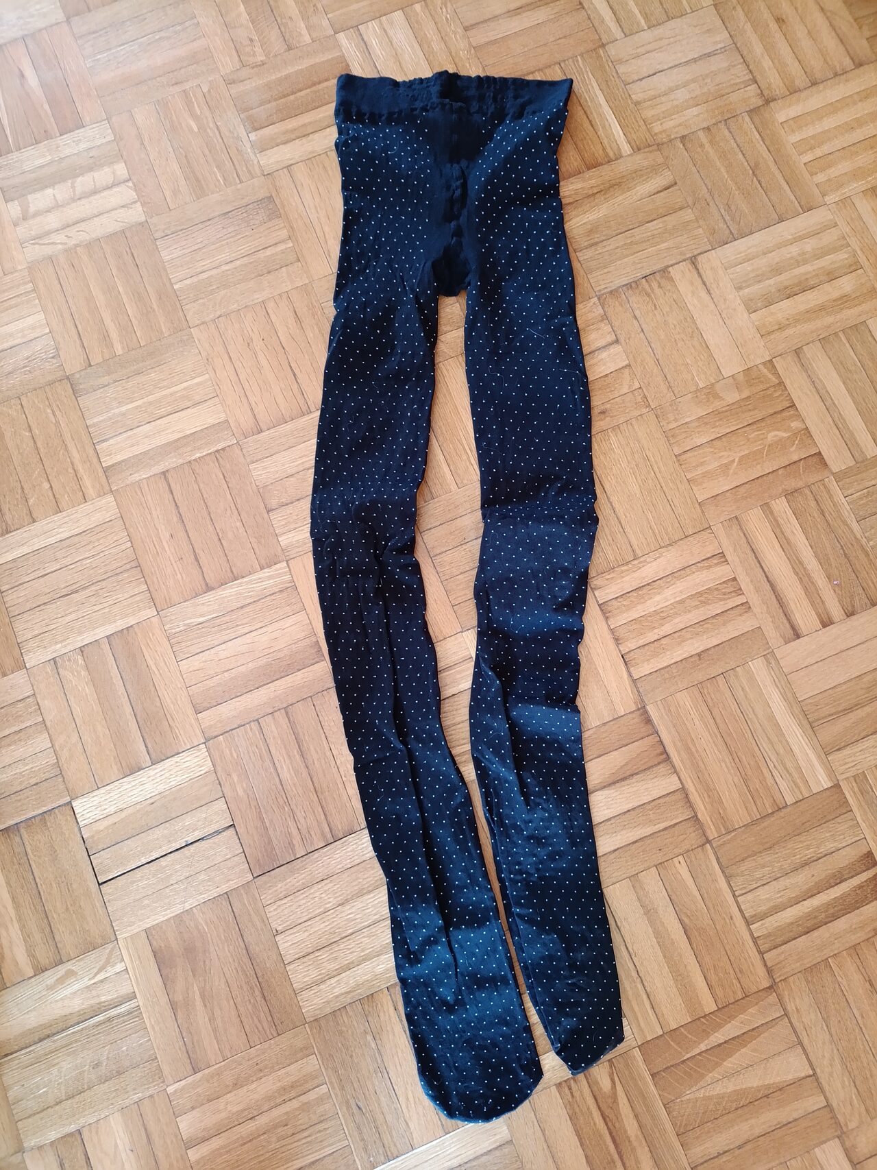 Collant abbastanza spessi con motivo a pois bianchi in rilievo. Messi forse una volta, taglia 2 .