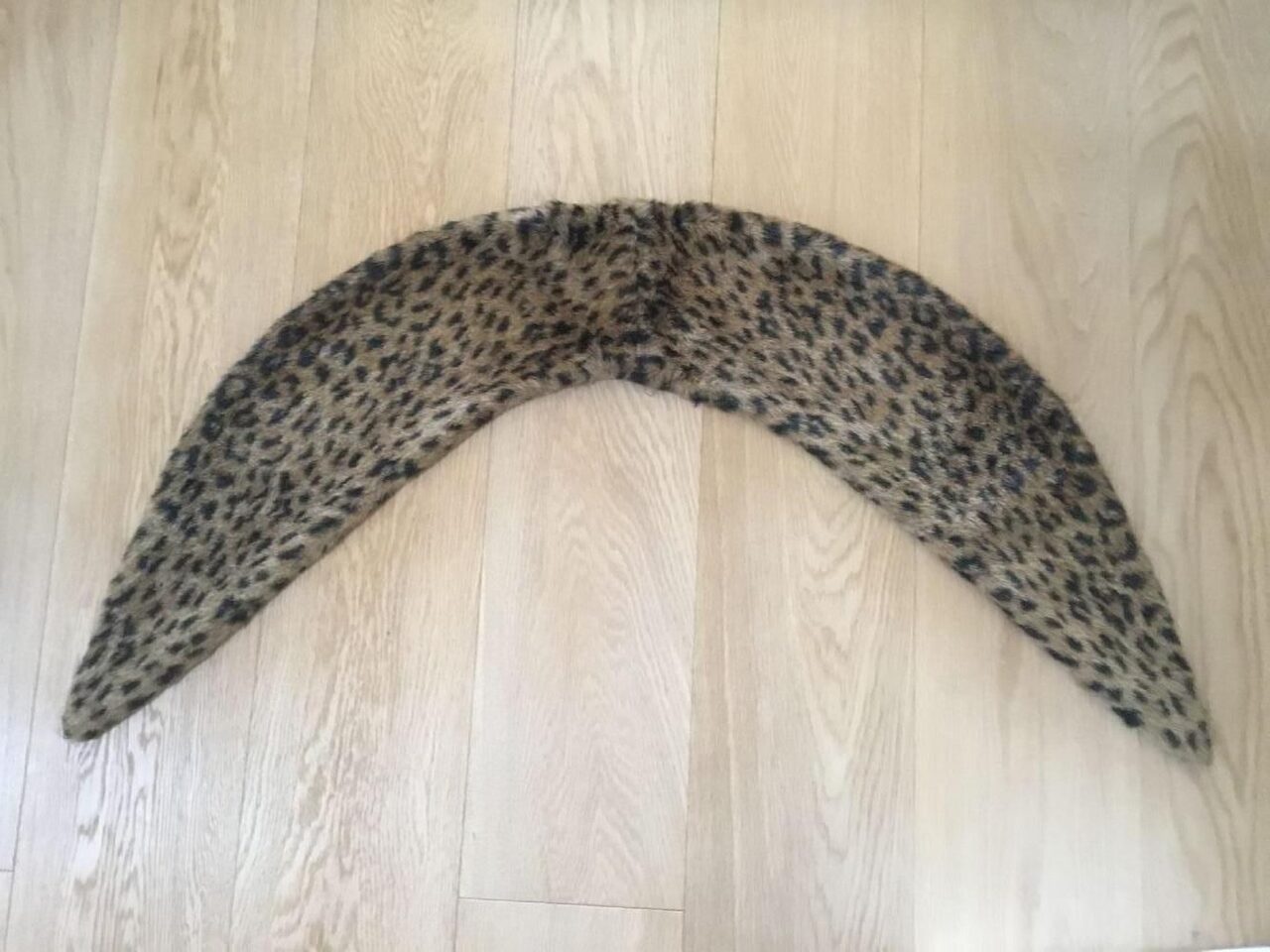 Collo in pelliccia ecologica maculata, scucito dai revers di un cappotto. Cerca nuova destinazione su un cappotto, un cardigan o per rielaborazioni. Morbido, foderato dietro. Lunghezza 56x2, larghezza max 18. .