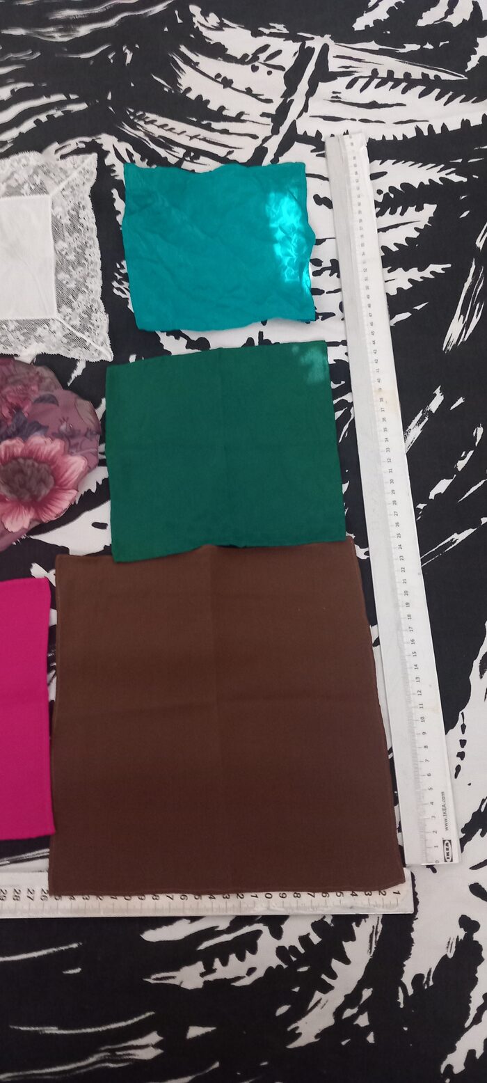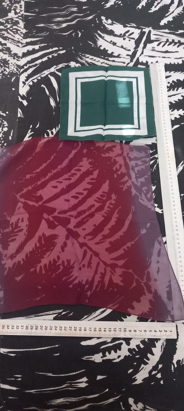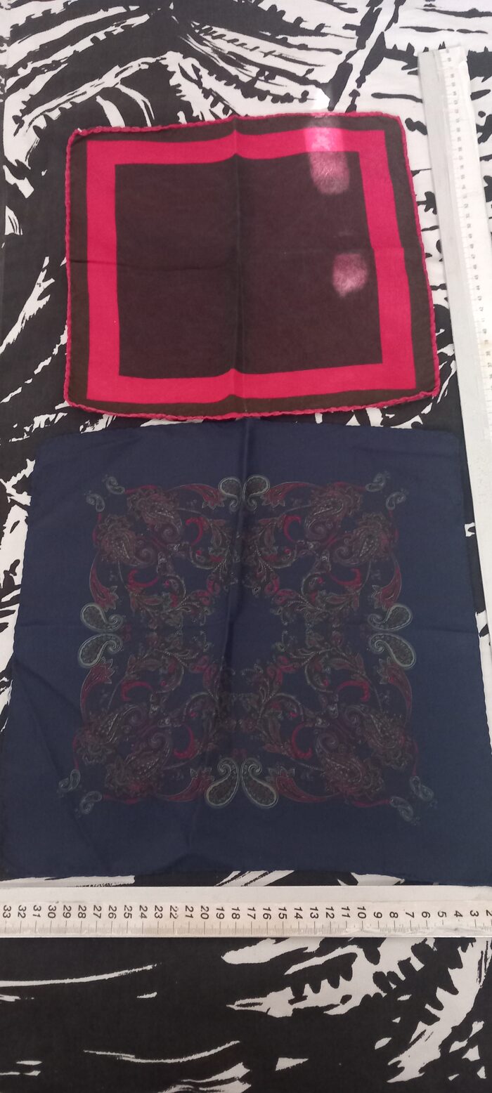 seta 100%foularini da collo 5 coin cadaunofazzoletti da taschino 3 coin cadaunosconto in proporzione al n°richiesto .