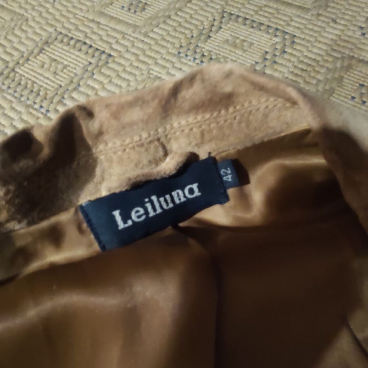 Giacca donna in pelle scamosciata, marrone caramello, veste taglia m. Usata tanto ma secondo me ancora sfruttabile .