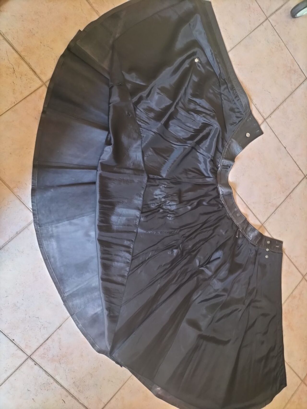 Gonna in pelle, molto morbida foderata larghezza massima cintura 72 cm, si può restringere spostando i bottoni, era a portafoglio è stata allargata. Da anni nell'armadio inutilzzata .
