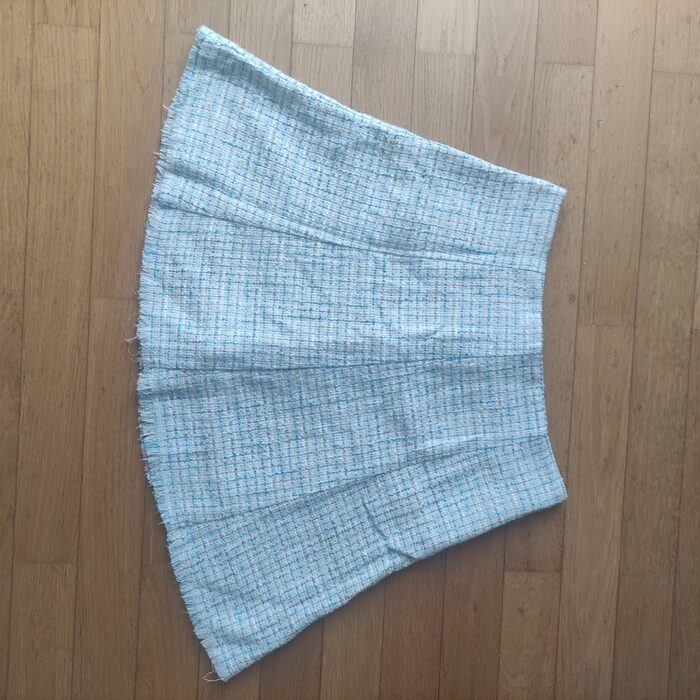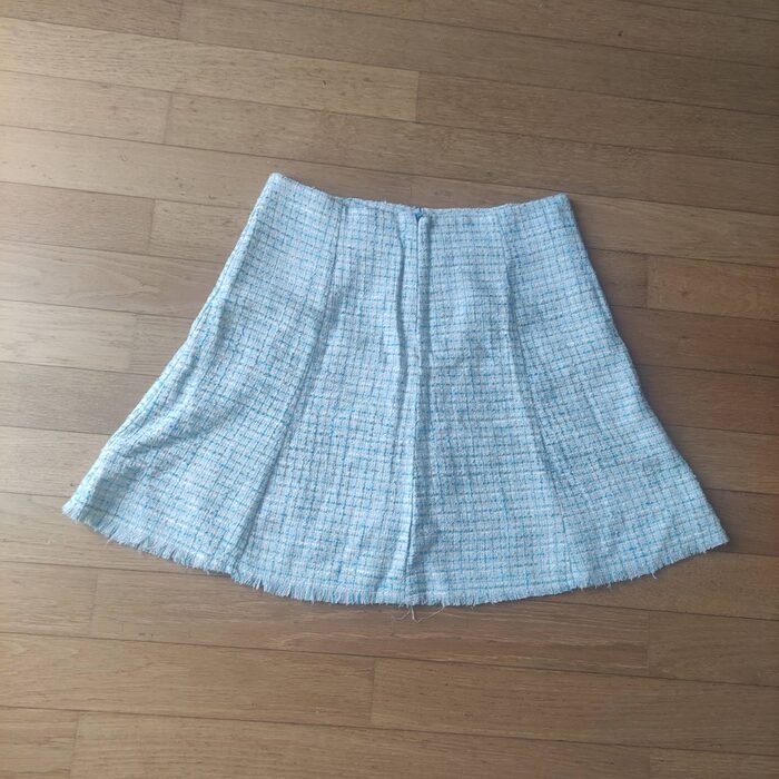 gonna, taglia 44, con cerniera, appena sopra al ginocchio, per primavera autunno, bianca e azzurra a quadretti .