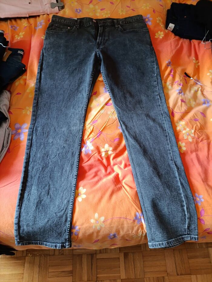 Jeans grigi elasticizzati (99 cotone 1% elastan). Modello 5 tasche, vita 47, fianchi 51 cm. Come nuovi .