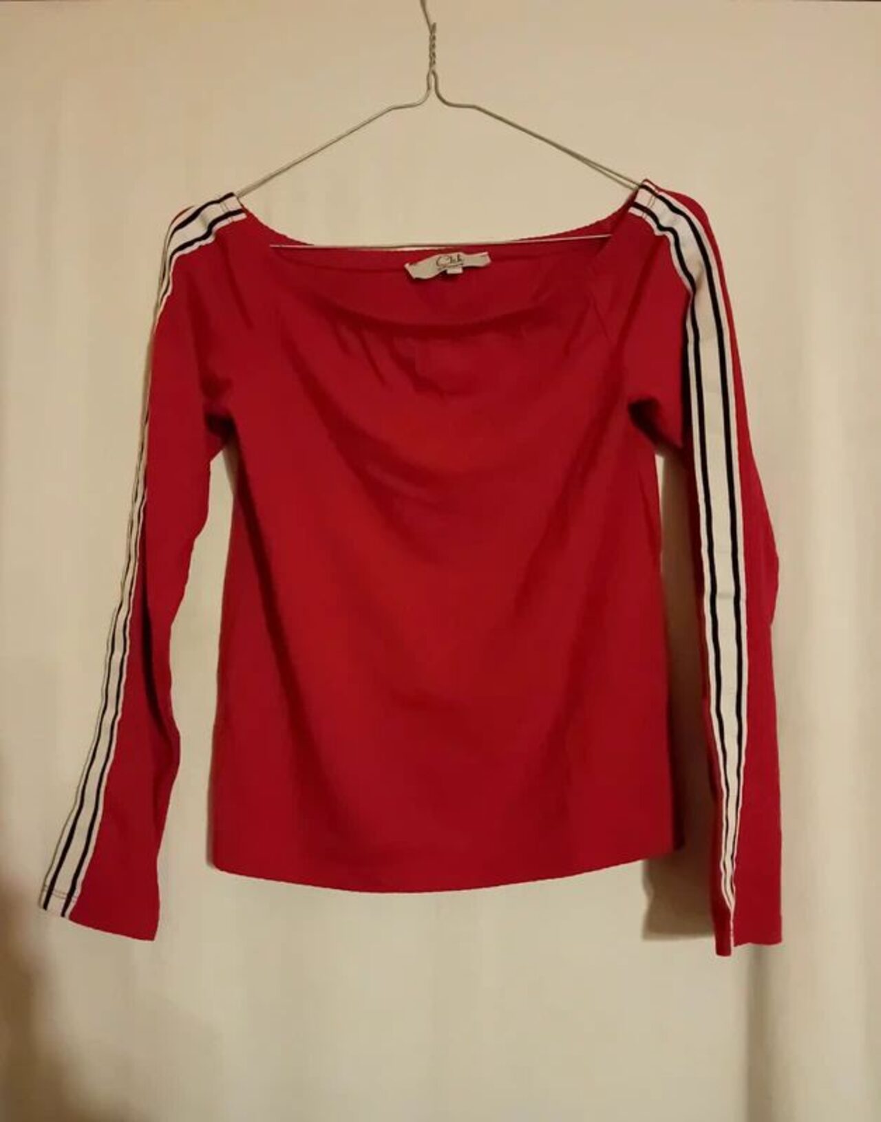 Particolare e molto carina, da portare aderente scoprendo le spalle. Composizione in foto. Ascelle a riposo 37 cm. Ottimo stato. Bel rosso scuretto. .