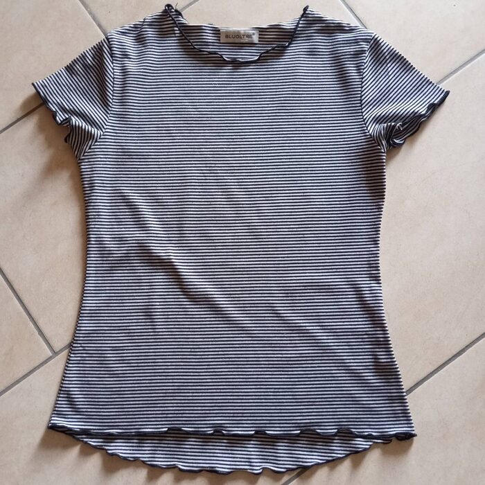 Maglietta a righine bianche e nere con un filo lurex veste una MNon ha più la composizione,presa in baratto .