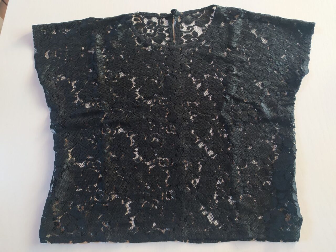 Maglietta in pizzo nero credo tg L, non conosco il materiale, ascelle cm 50, lunghezza cm 45. .