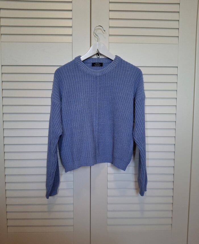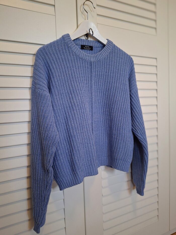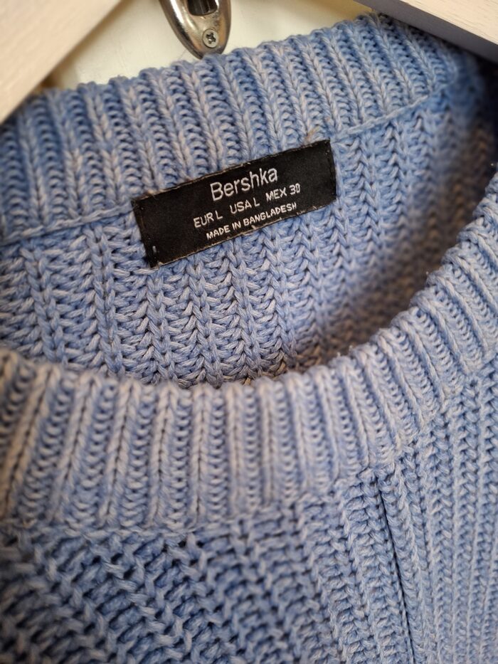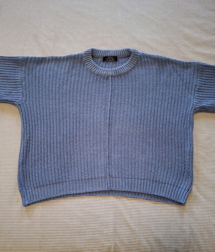 Maglione Bershka taglia L.Composizione 52% cotone, 48% acrilico.Misure m:Ascella-ascella cm 56Lunghezza cm.47. .
