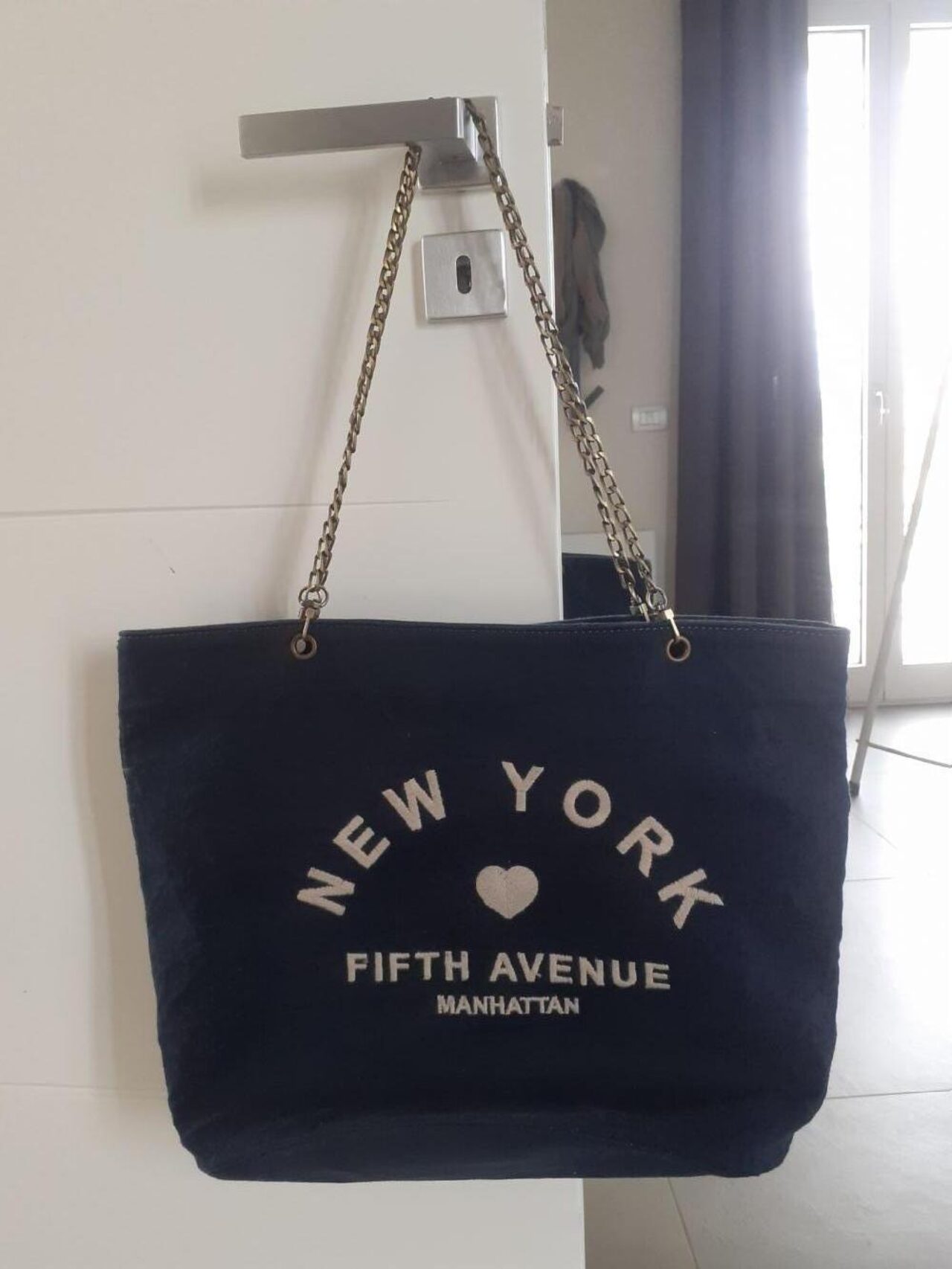 Non ricordo da chi ho preso questa borsa tanto tanto tempo fa, ma nn ho dimenticato la promessa di farla vedere a nuovo, era usurata l''ho lavata e cambiato le cordine con questa catenella bronzo , dentro ho ricucito un pò, ci ho messo un pò ma sn felice adesso di poterla usare, grazie a chi me l''ha ceduta .
