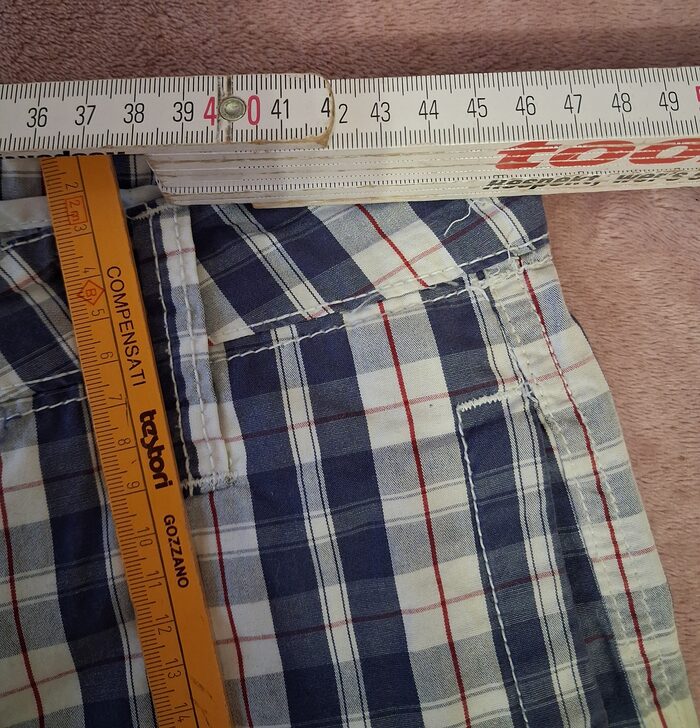 Pantaloncino estivo blu, largo 46/47 cm per 2, alto 53 cm .