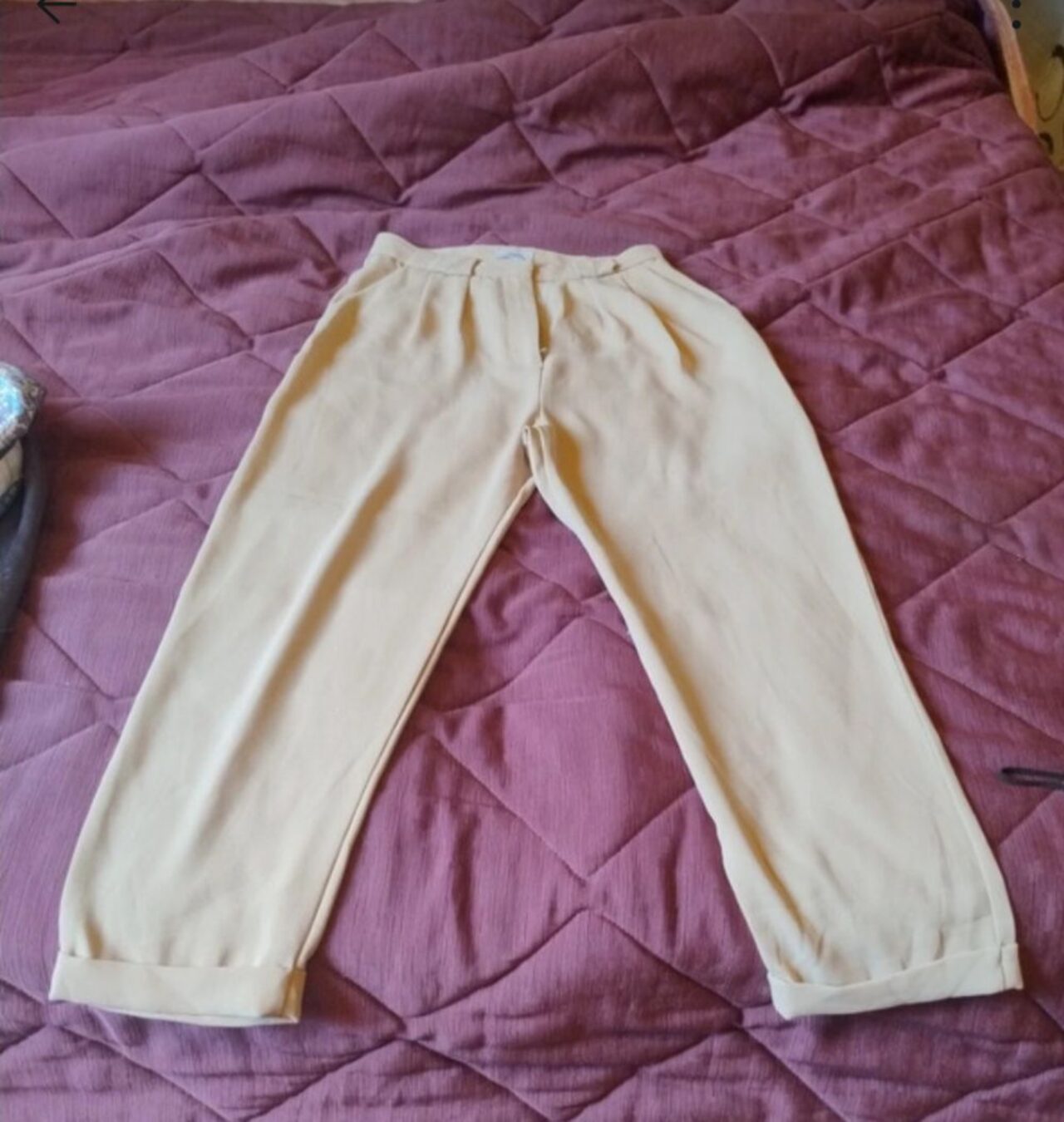 LeggeriCon risvolti sul fondoRiportano taglia 42 ma vestono secondo me 40 La misura della vita è 34 cm sul doppioSopra la tasca dietro hanno un piccolo filo tiratoModello largoMarca ovs .