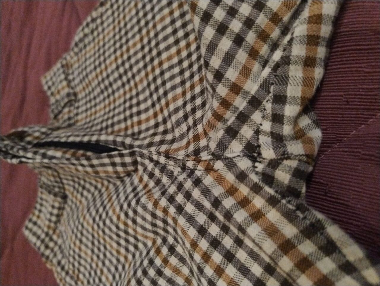 Taglia S non vedo difetti se non la cucitura in foto In cotone ed elasthan .