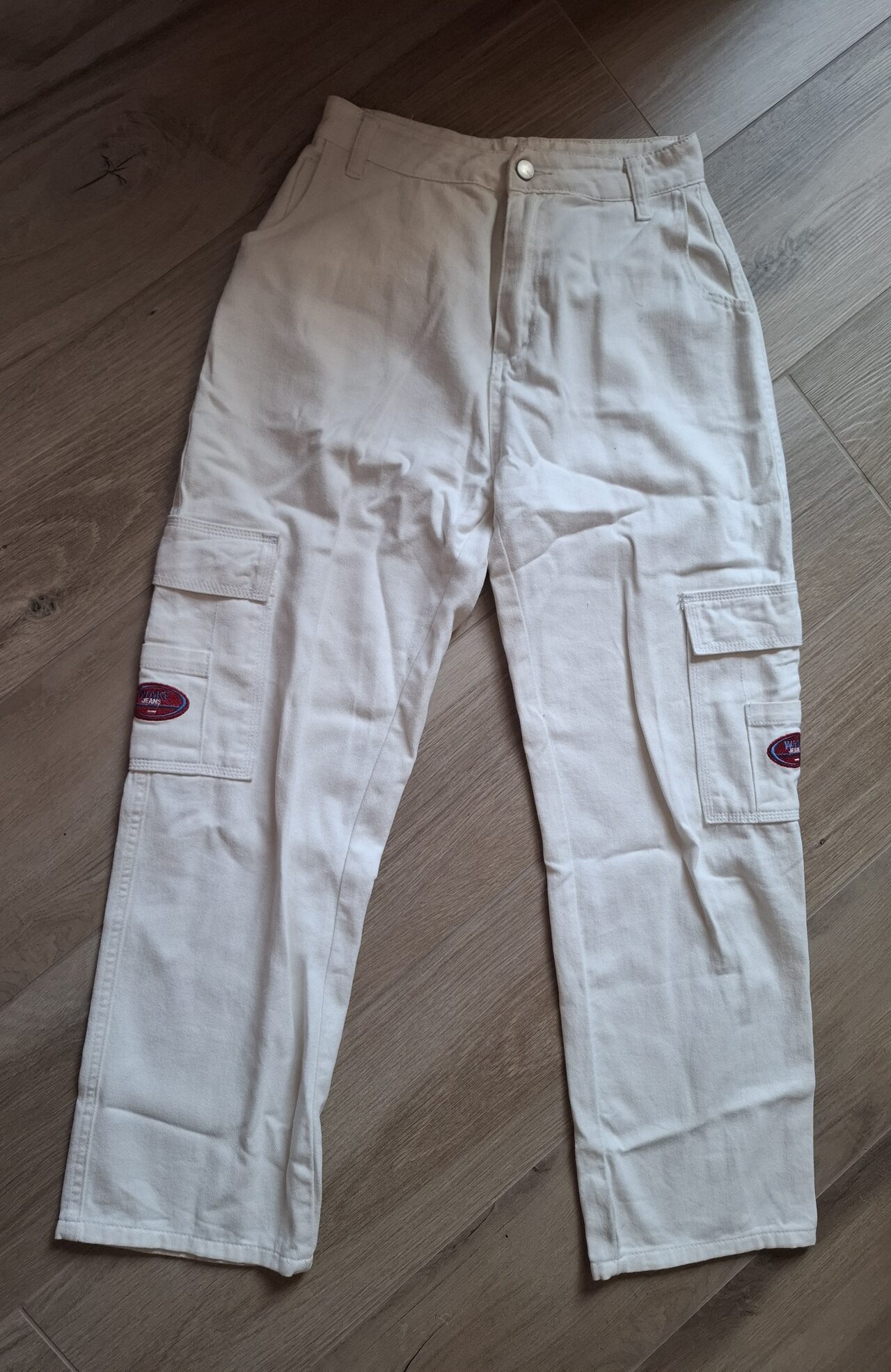 Pantaloni unisex tipo cargoBianco sporcoIn perfetto statoTag S tag 40Tessuto pesante cottone autunno inverno .