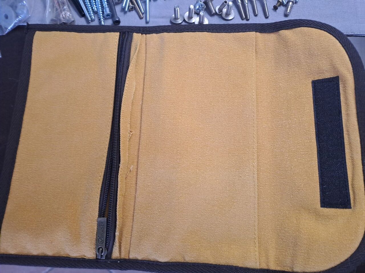 In cotone pesante con cerniere , molto elegante, nuovo .