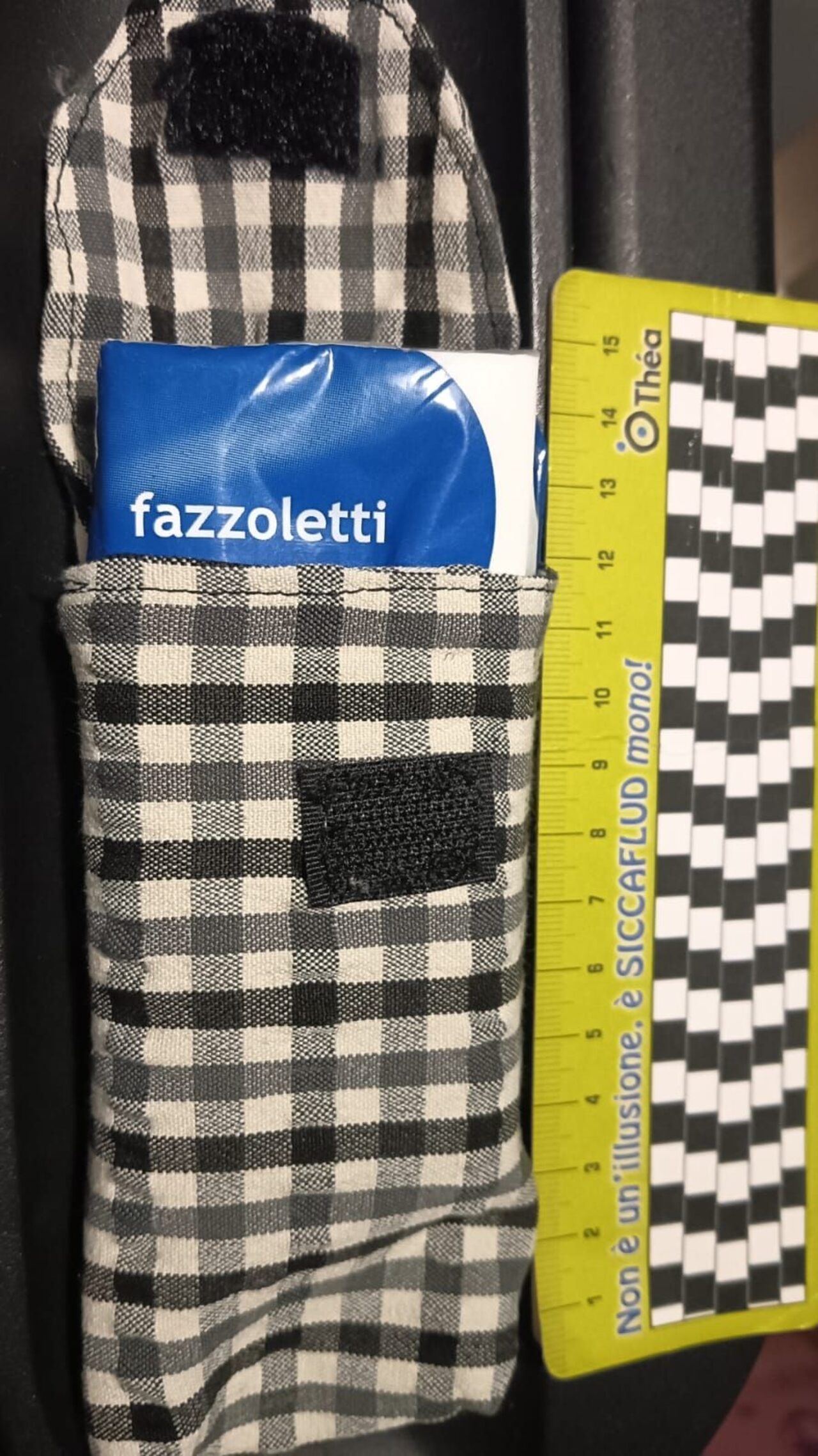 portafazzoletti in tessuto elastico con strappo fatto da me,se volete potete metterci altro,la misura è giusta per il pacco di fazzoletti standard .