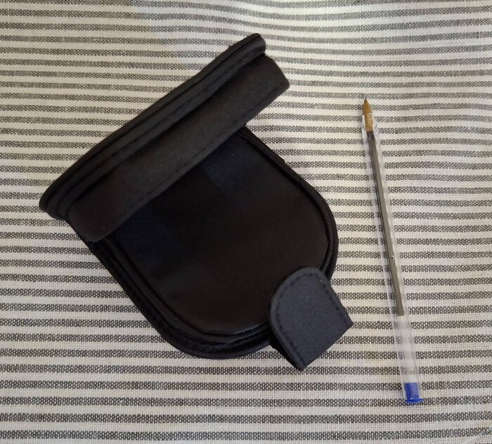 Portamonete in tessuto tipo impermeabile di colore nero, nuovo. .