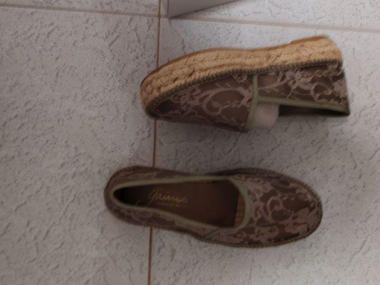 Scarpe donna 37, in corda sotto, sopra in pizzo trasparente, primavera estate. Non vedo difetti .