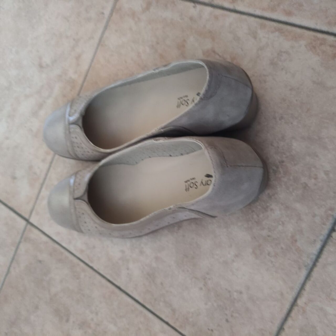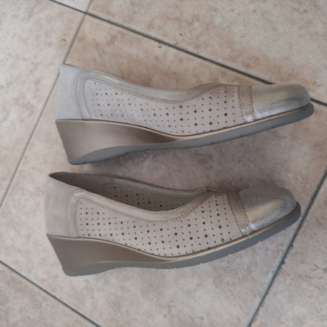 Scarpe Mary soft, made in Italy, numero 39, beige e dorate, con zeppa in gomma, usate pochissimo. credo in finta pelle .