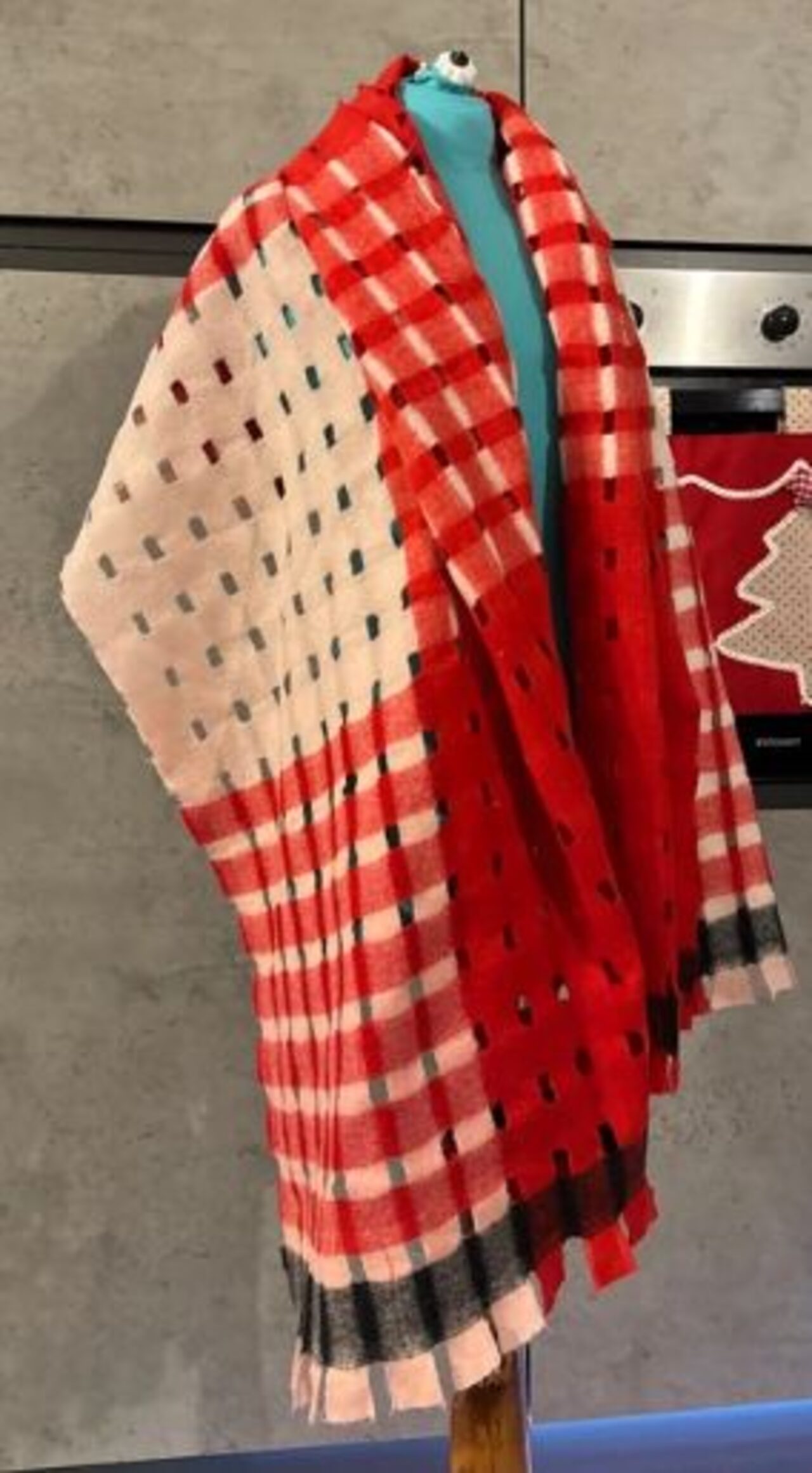 Sciarpona in pile con motivo a quadri traforato, usata poco ma troppo grande x me .