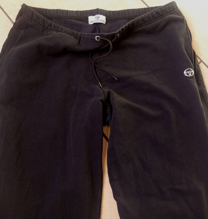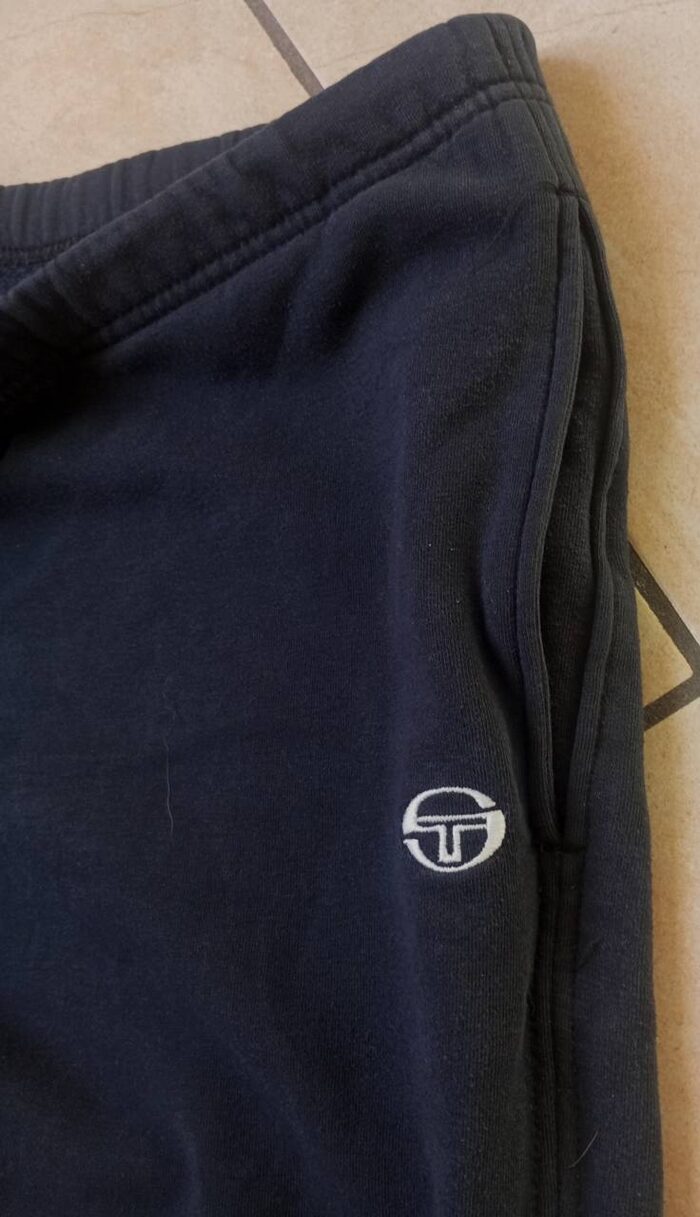 Sergio Tacchini,pantalone unisex blu scuro in felpa di cotone con tasche laterali e cerniere sulla gamba presi per mio marito gli stanno grandi .