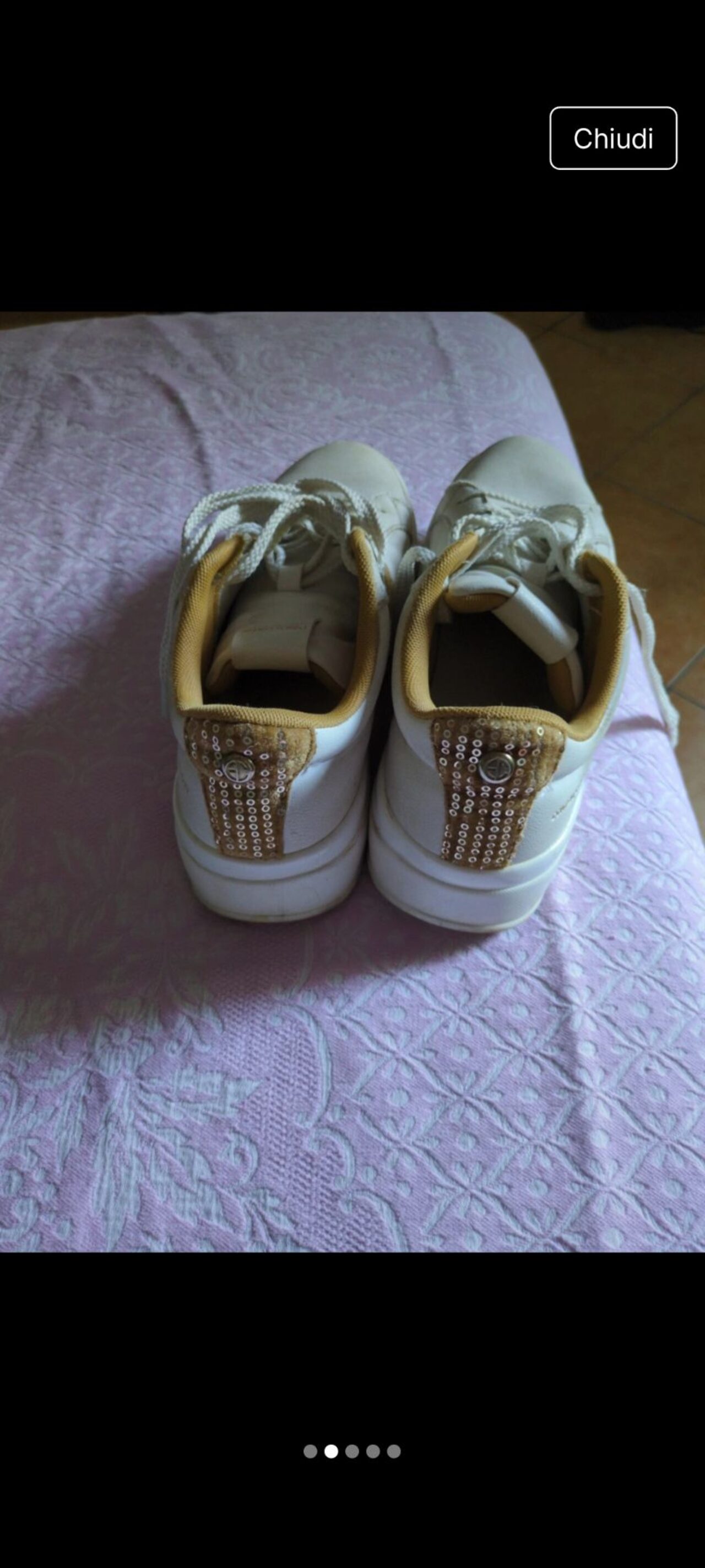 Scarpe donna tg 38 bianche con applicazioni oro. Marca Enrico coveri .