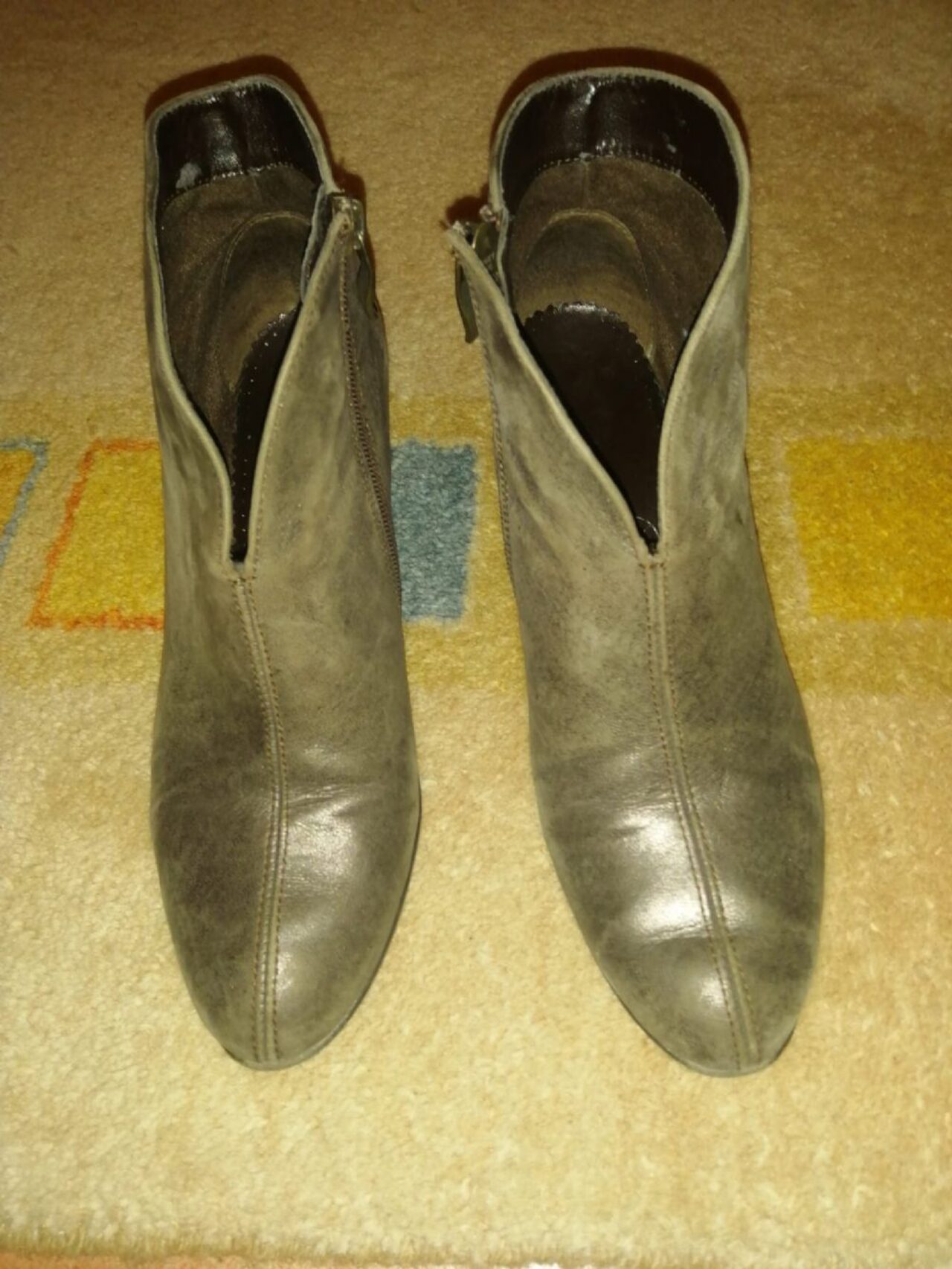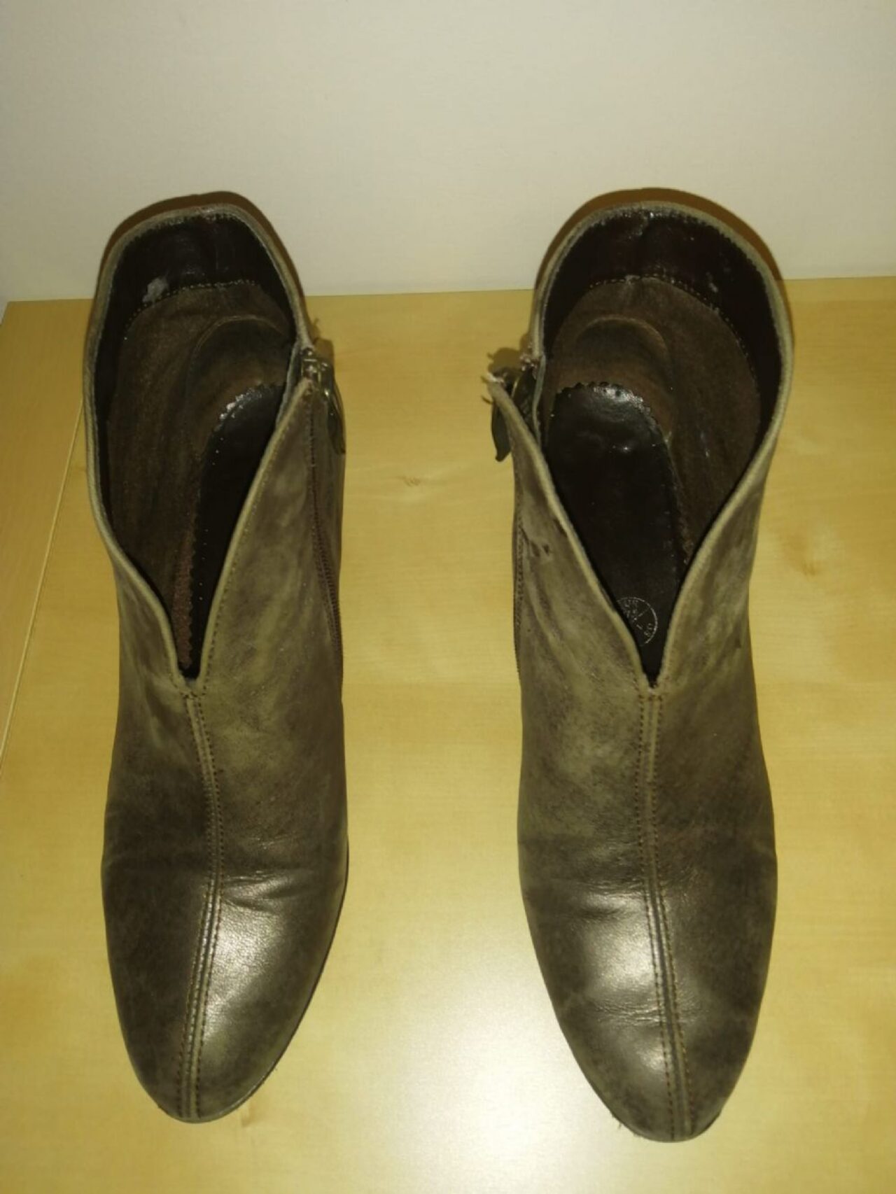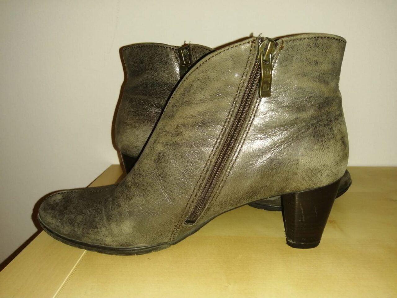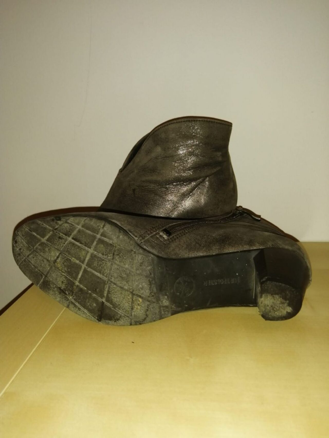 Misura 37 e mezzo. Colore tortora semilucido (effetto anticato). tacco 5cm e mezzo. .