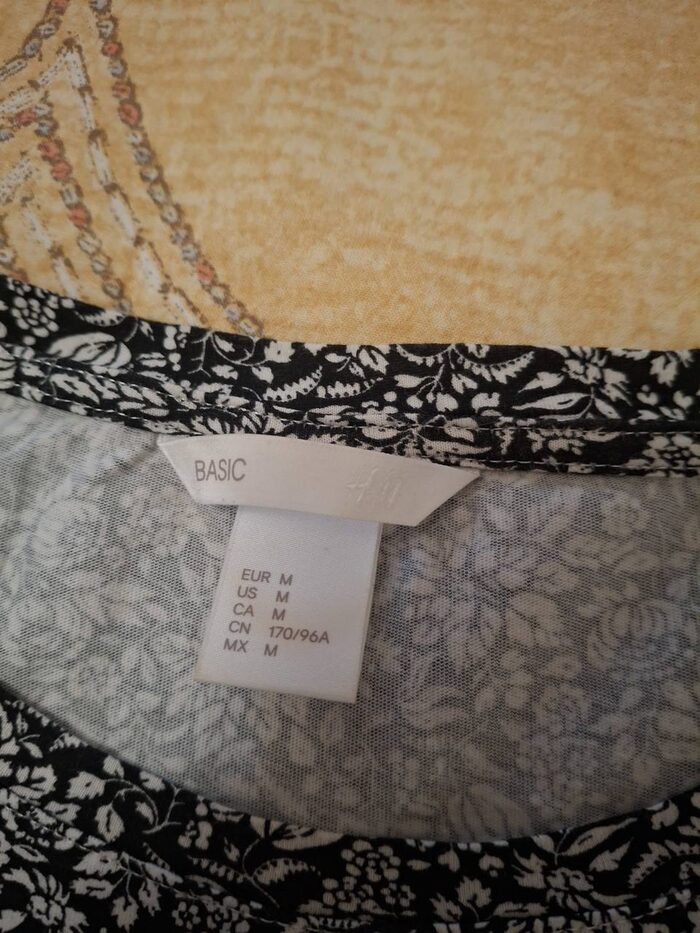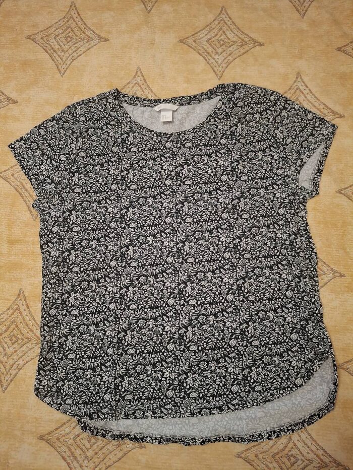 Maglietta t-shirt di H&M con fantasia a fiori bianca e nera, taglia M, 100% cotone. Usata pochissime volte, in ottime condizioni. .