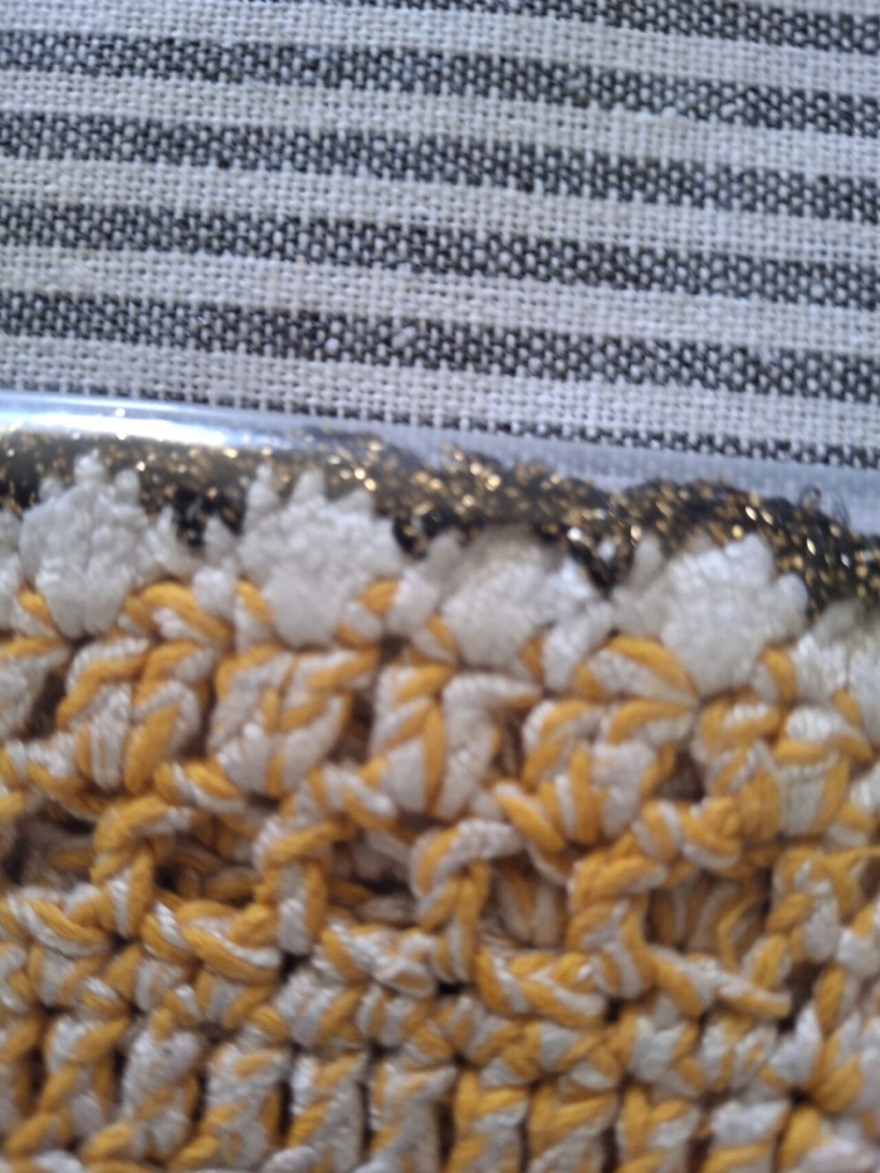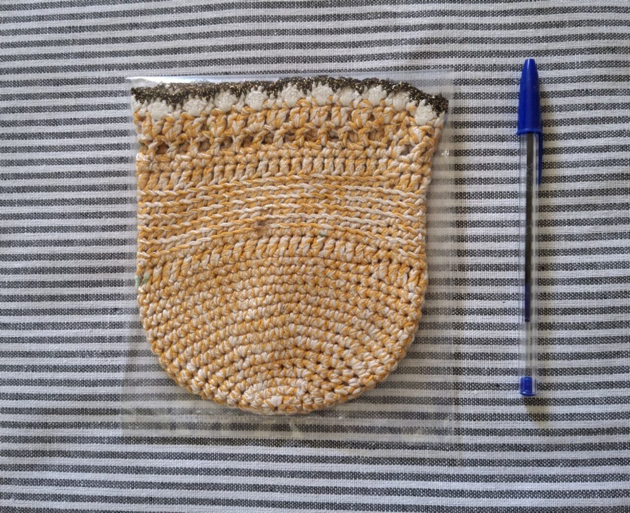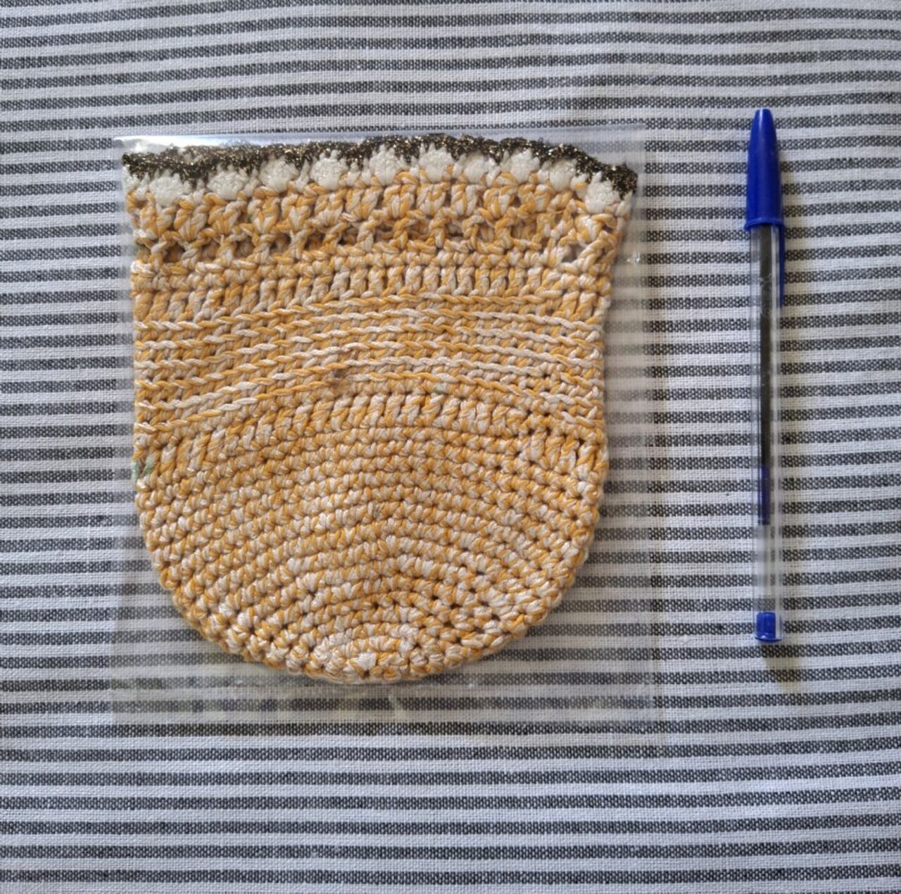 Regalo graziosa trousse realizzata all''uncinetto, è in buone condizioni, ho scritto usato tanto solo perché presenta qualche piccola macchia colorata di azzurro e marrone che non è venuta via col lavaggio.