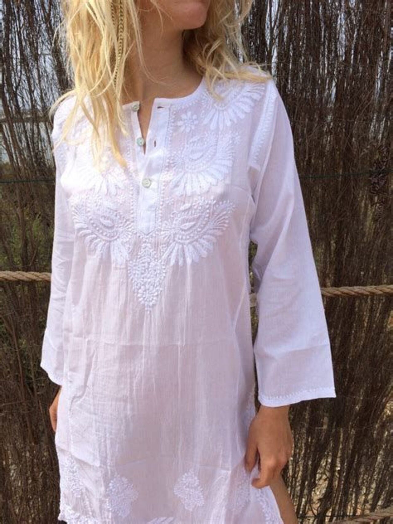 Vorrei una tunica bianca semplice o ricamata, lunga fino ai piedicopricostume, camicione, caftanograzie .