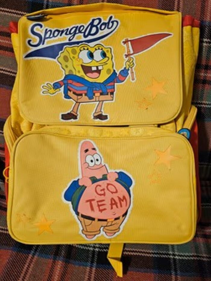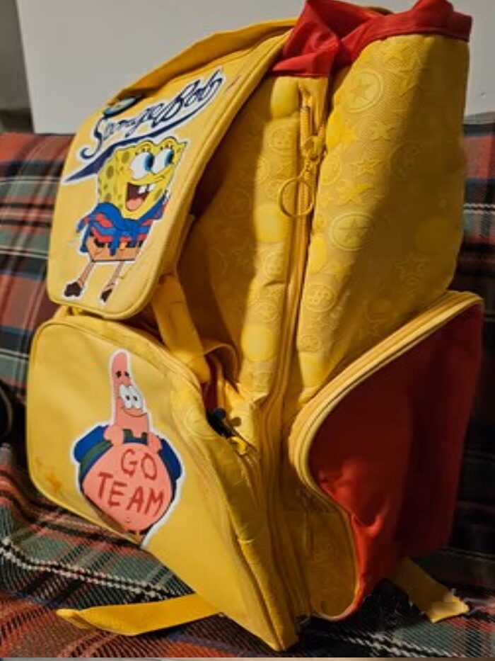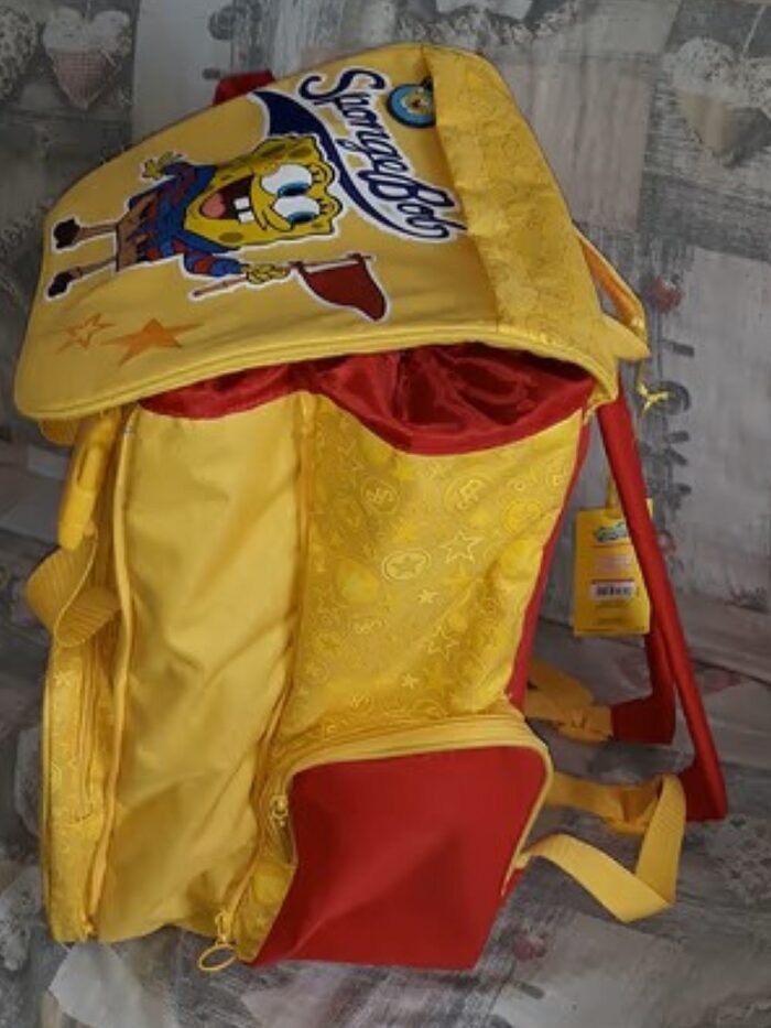 zaino scuola spongebob con spallacci imbottiti doppio scomparto e numerose cerniere con vani di ottima fattura adatto a scuole elementari, ATTENZIONE: è uno zaino di qualità e valore, quello della foto non è l'originale ma invio uno zaino chiuso nella sua confezione originale mai aperta. Cerco tantissimi francobolli italia recentissimi, 50 pezzi e lo regalo .