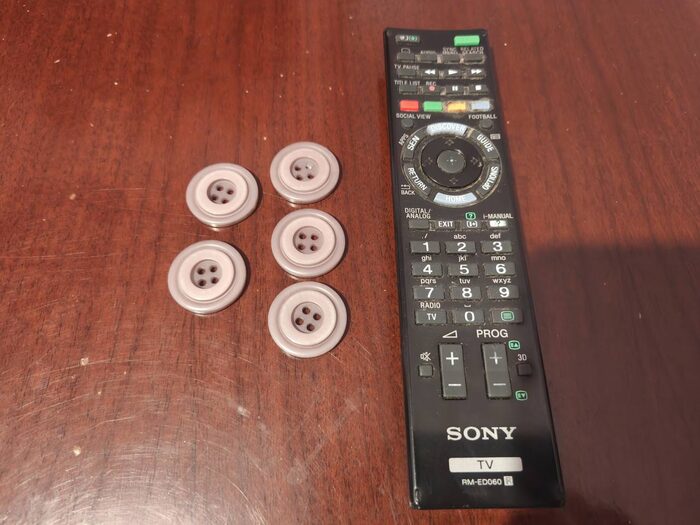 Misura abbastanza grande, telecomando per dimensioni, credo siano in plastica. .